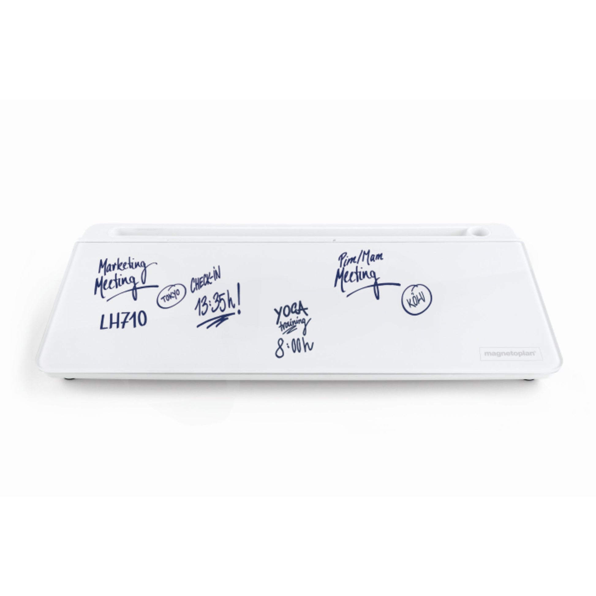 Bezeichnung: magnetoplan® Memoboard Desk-Organizer 42 x 5,6 x 18 cm (B x H x T) inkl. schwarzer Boardmarker mit Löschfunktion ABS Kunststoff/Glas weiß