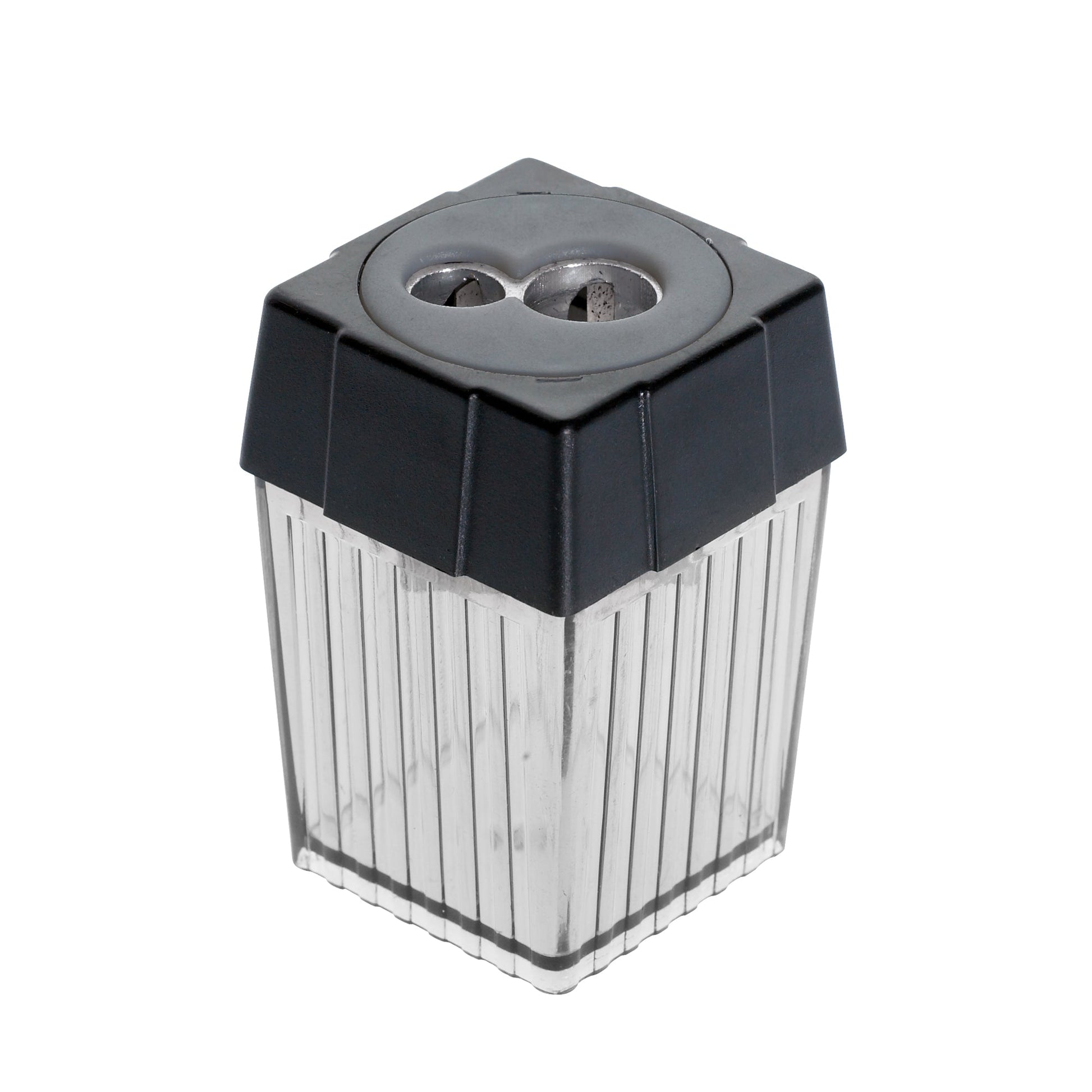 Bezeichnung: ALCO Doppelspitzdose 7,8 und 11mm quadratisch Material des Spitzers: Stahl Material des Behälters: Polystyrol rauch/transparent