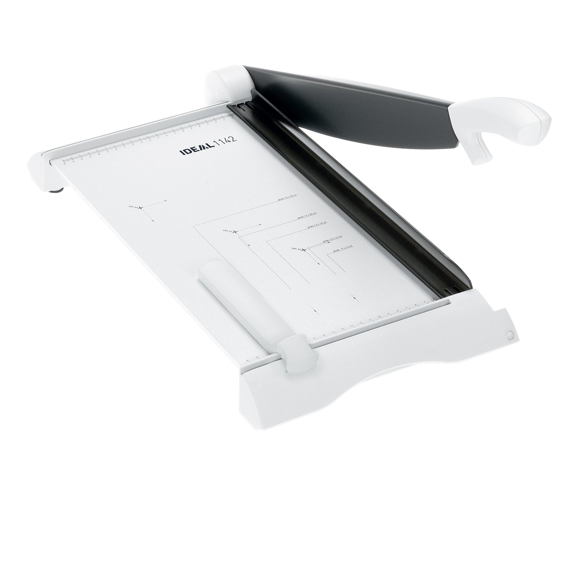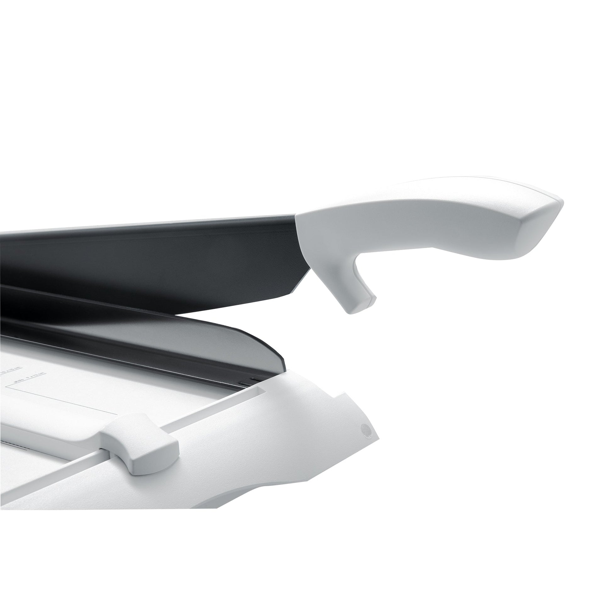 weißAttraktiver Hebelschneider - ideal auch für Fotoausdrucke vom PC. Lasergeschnittenes Universalmesser und Schnittschiene aus hochwertigem Spezialstahl mit Antihaftbeschichtung. Mit integriertem Präzisions-Schnittandeuter. Stufenlos verstellbarer Rückanschlag (kann auf vorderer oder hinterer Papieranlage platziert werden). Papierformate von DIN A4 bis DIN A6 und gängige Fotoformate auf dem Schneidetisch. Zwei Papieranlagen.