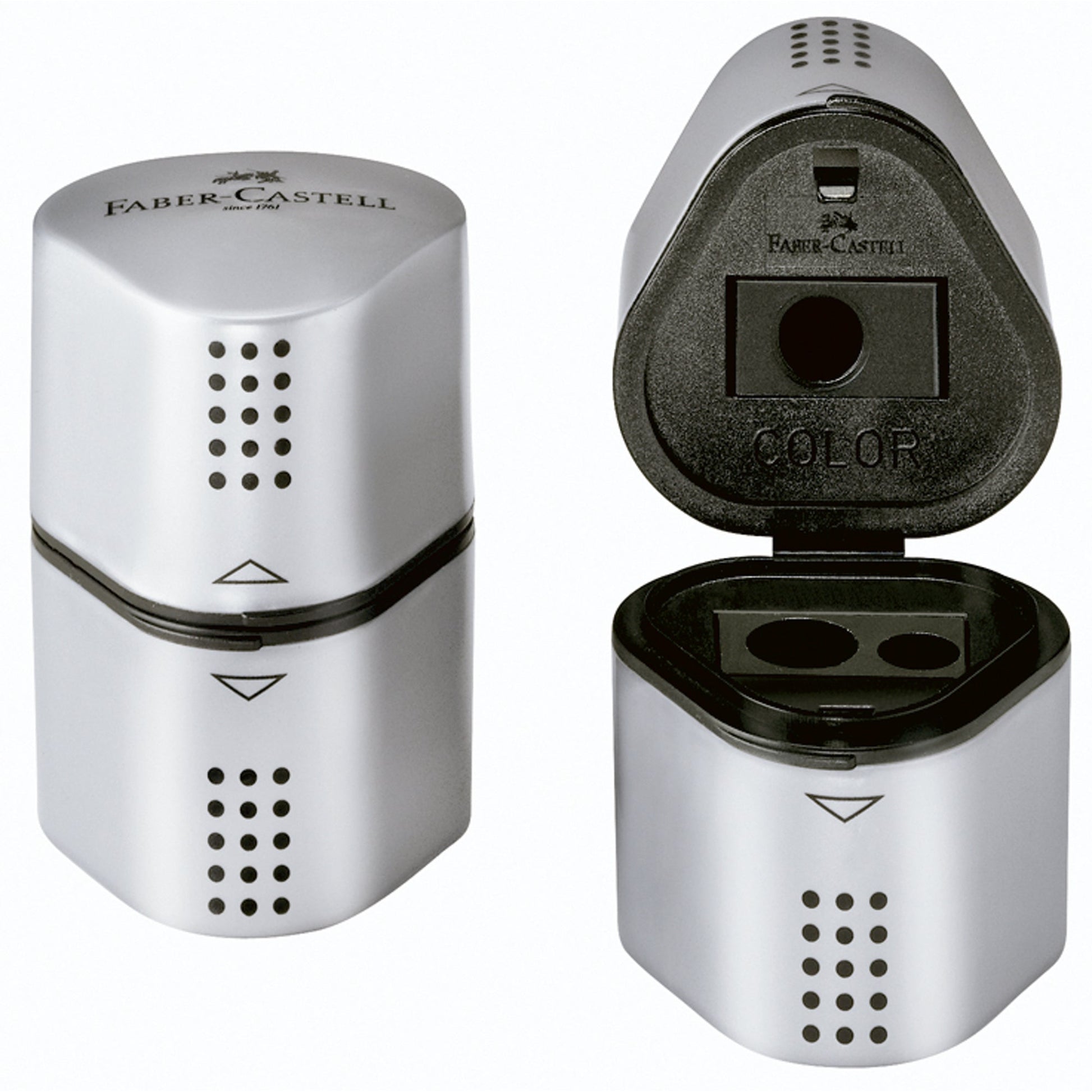 Bezeichnung: Faber-Castell Dreifachspitzdose GRIP 2001 8 und 10mm dreieckig Kunststoff Kunststoff silber