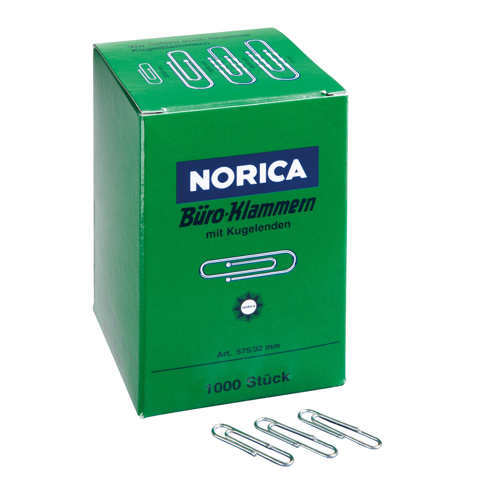 Bezeichnung: NORICA® Büroklammer glatt, runde Form, mit Kugelenden 32mm Metall, verzinkt silber 1.000 St./Pack.