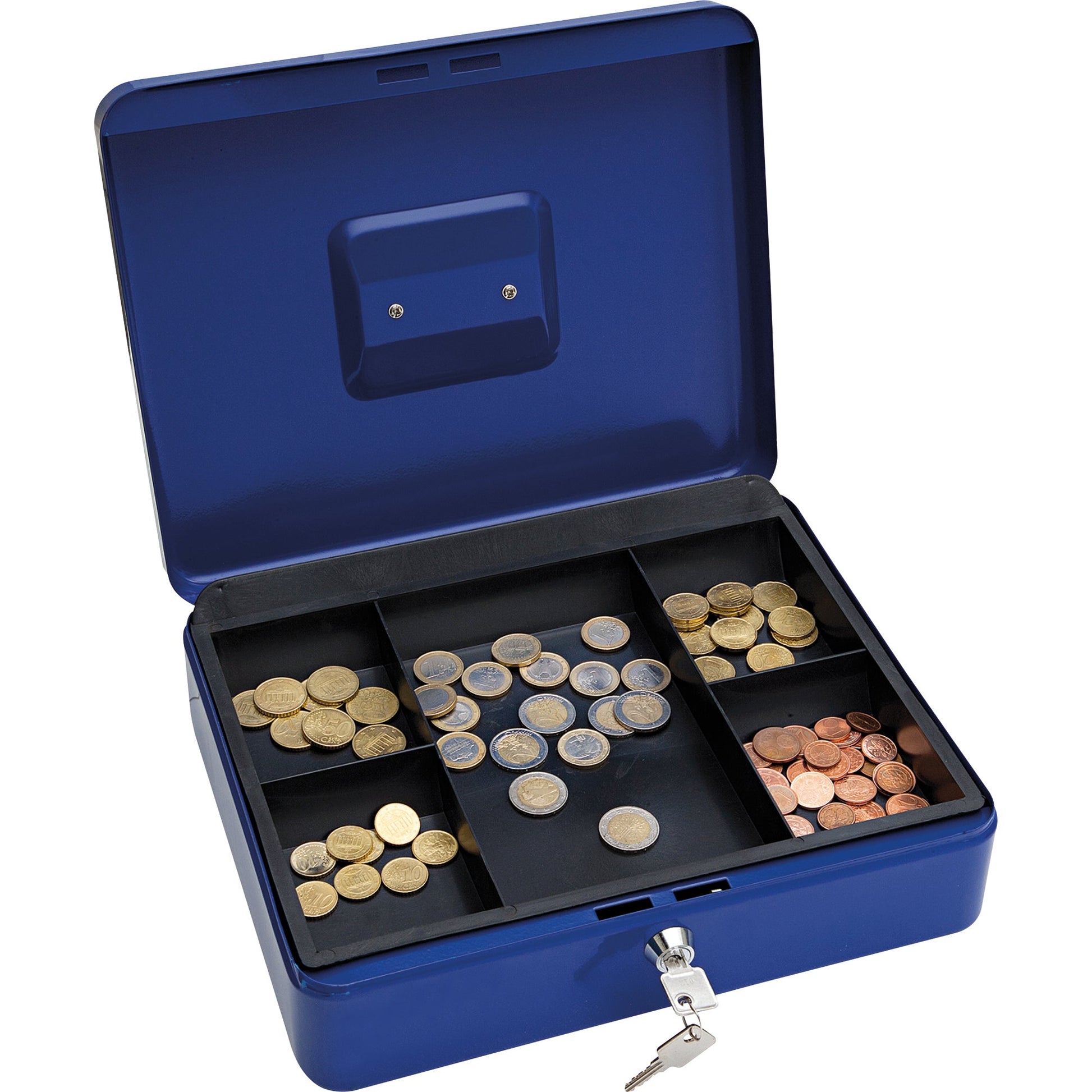 Bezeichnung: WEDO® Geldkassette 30 x 9 x 24 cm (B x H x T) 1 Fach für Banknoten 5 Fächer für Hartgeld mit Schloss Stahl blau