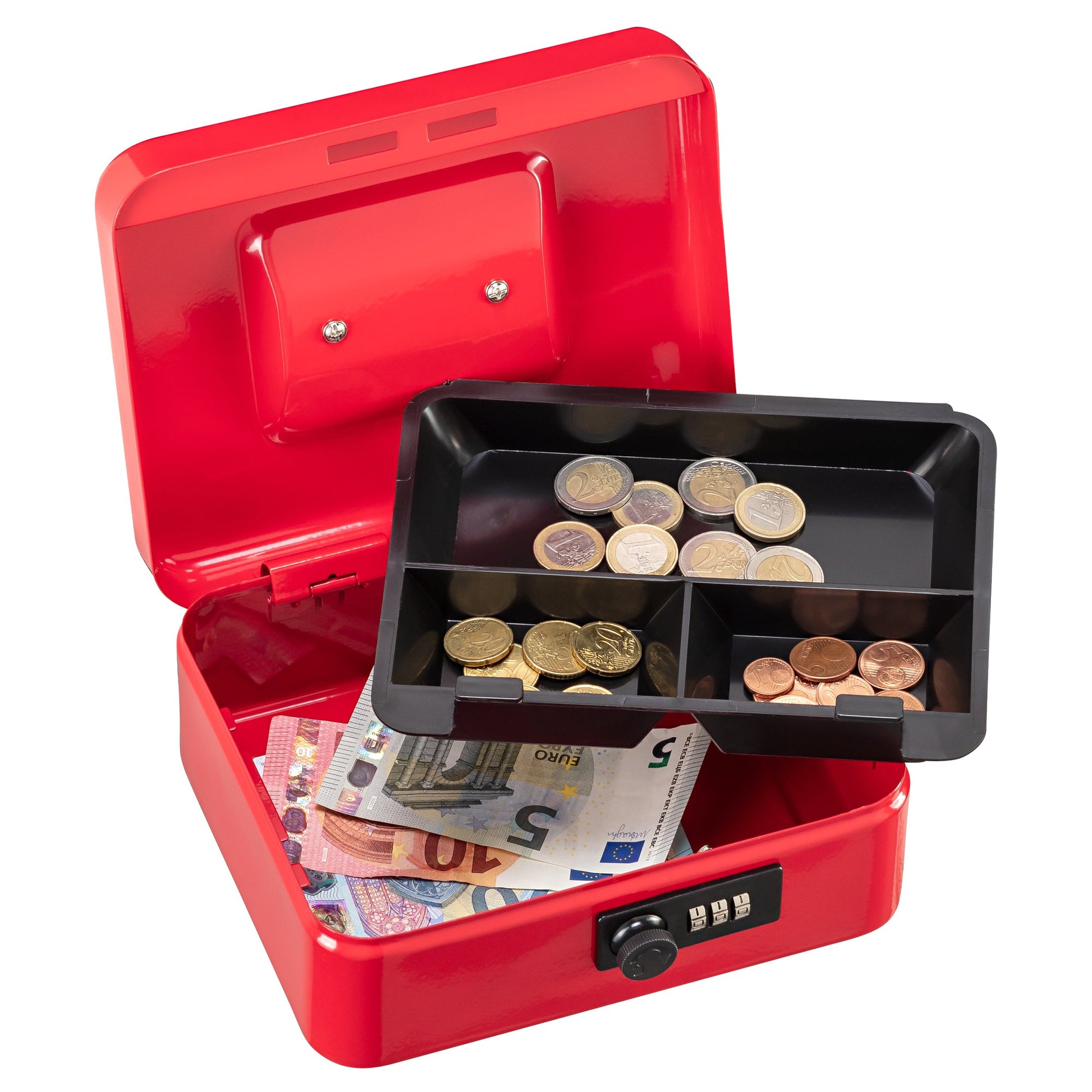 Bezeichnung: BURG-WÄCHTER Geldkassette Money Code 5020 20 x 9 x 16 cm (B x H x T) 1 Fach für Banknoten 3 Fächer für Hartgeld mit Schloss Stahl rot