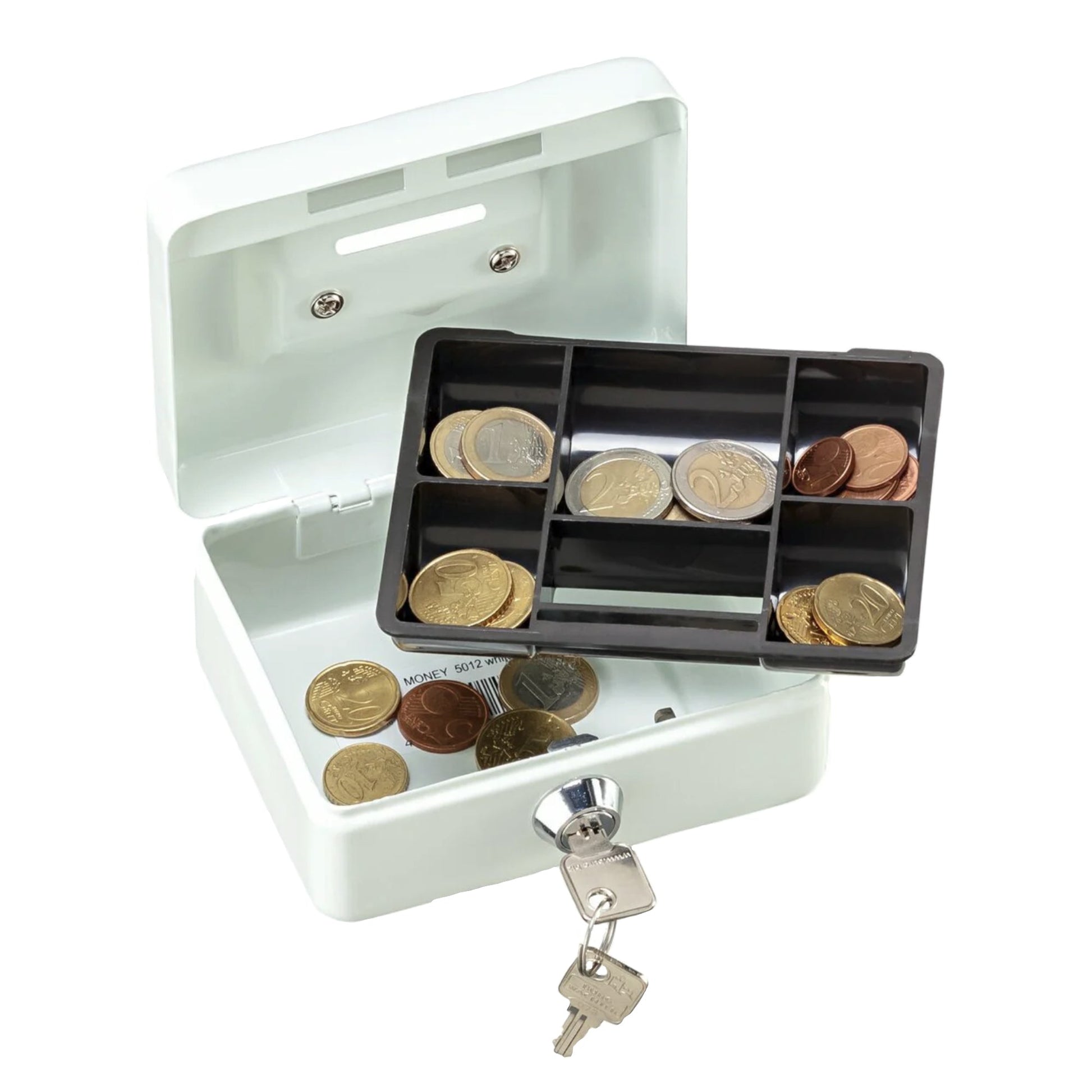 Bezeichnung: BURG-WÄCHTER Geldkassette Money 5012 12,5 x 6 x 9,5 cm (B x H x T) 5 Fächer für Hartgeld mit Schloss Stahl weiß