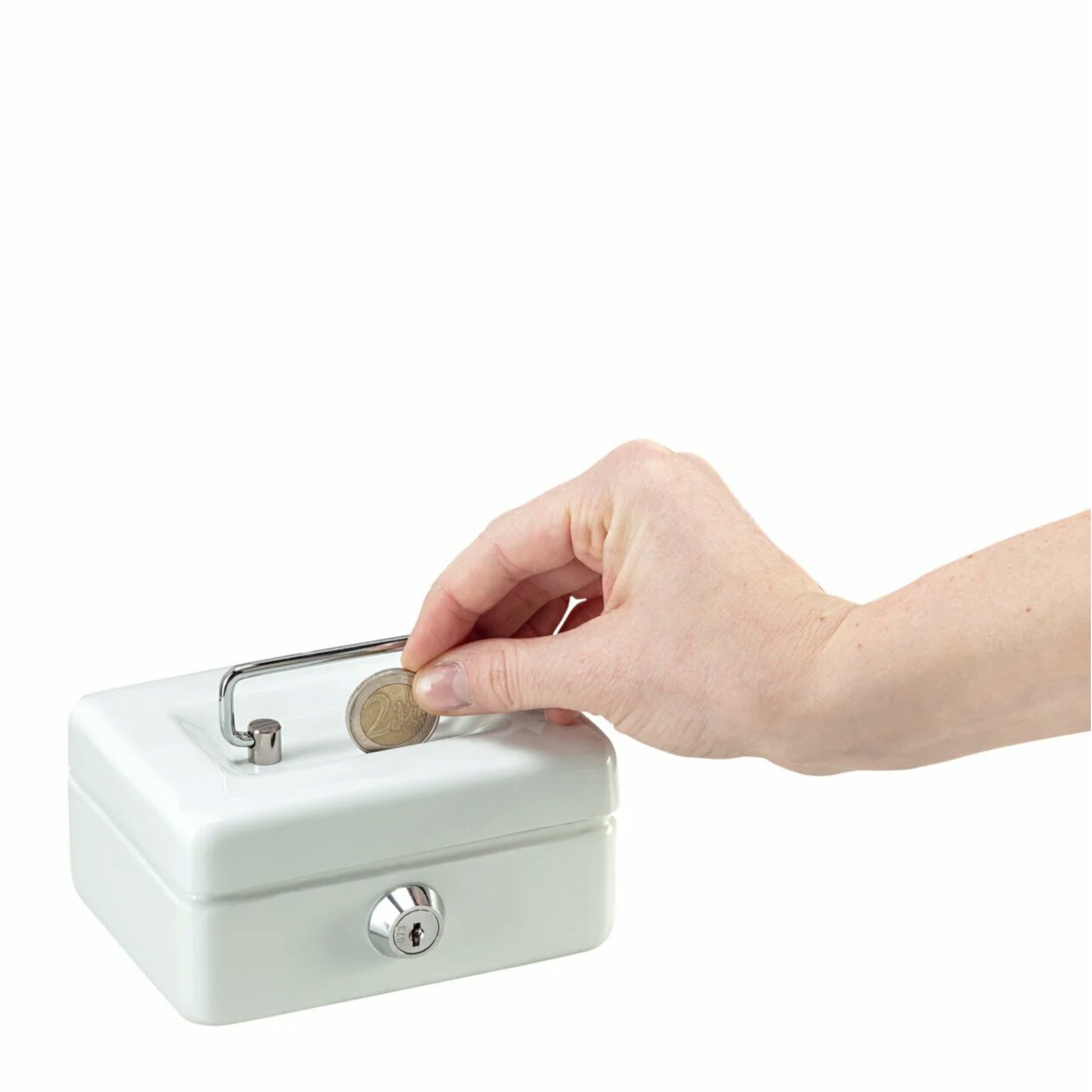 weißDurch den Einwurfschlitz für Hartgeld wird die Geldkassette Money 5012 zur Spardose. Der Griff liegt im Deckel der Geldkassette ein, sodass sie dadurch gut in Schränke oder Schubladen verstaut werden kann.