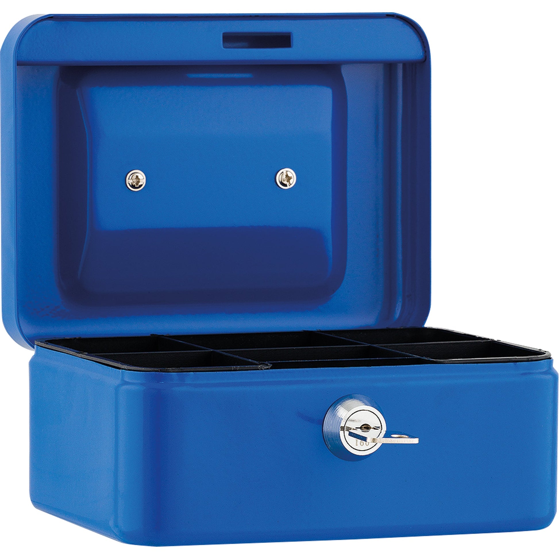 Bezeichnung: Geldkassette 15,2 x 8 x 11,8 cm (B x H x T) 4 Fächer für Hartgeld mit Schloss Stahl blau