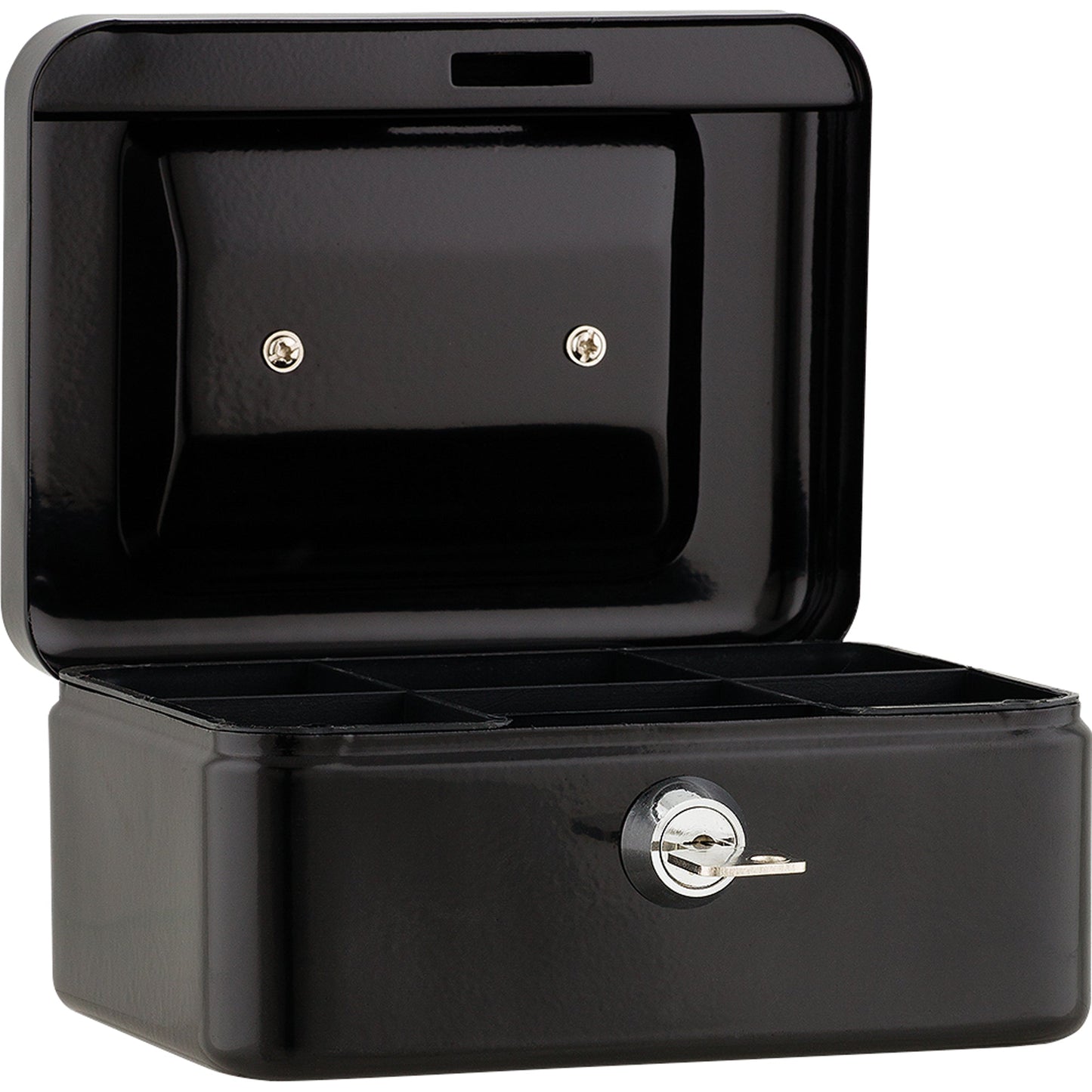 Bezeichnung: Geldkassette 15,2 x 8 x 11,8 cm (B x H x T) 4 Fächer für Hartgeld mit Schloss Stahl schwarz
