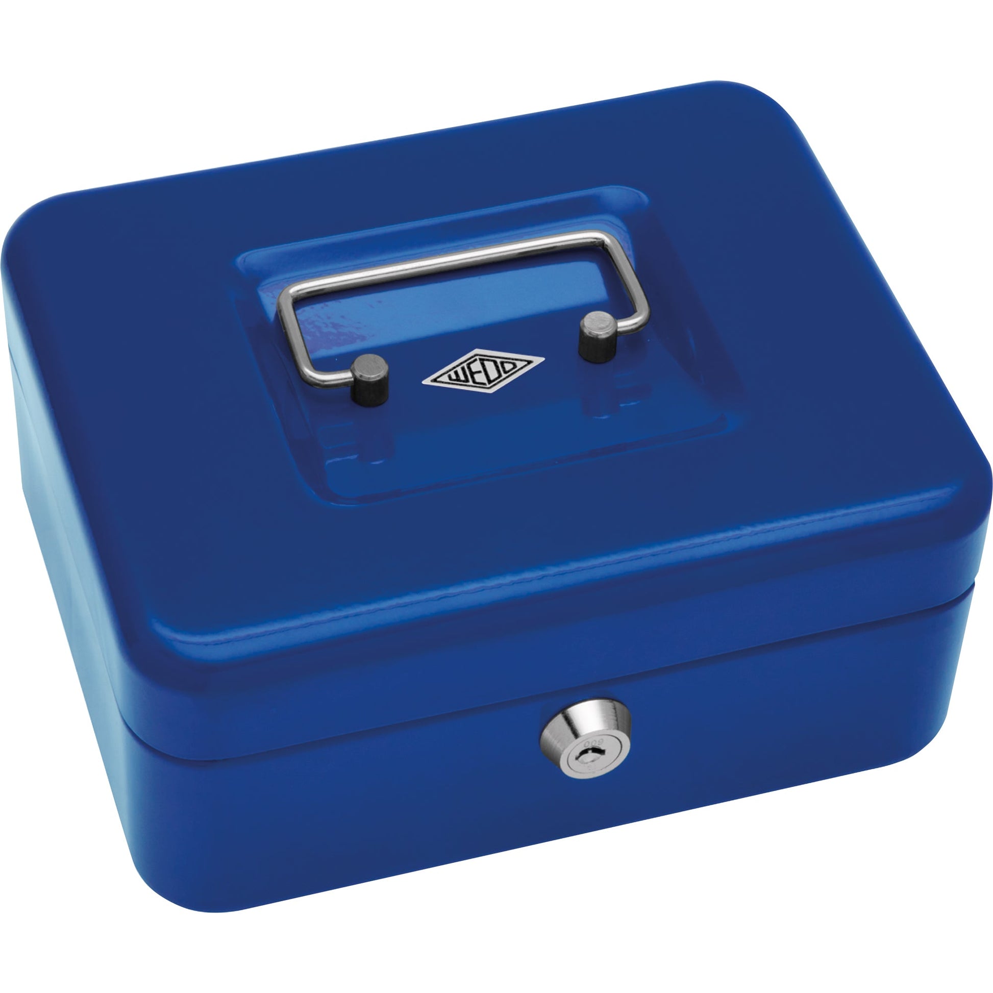 Bezeichnung: WEDO® Geldkassette 20 x 9 x 16 cm (B x H x T) 1 Fach für Banknoten 5 Fächer für Hartgeld mit Schloss Stahl blau