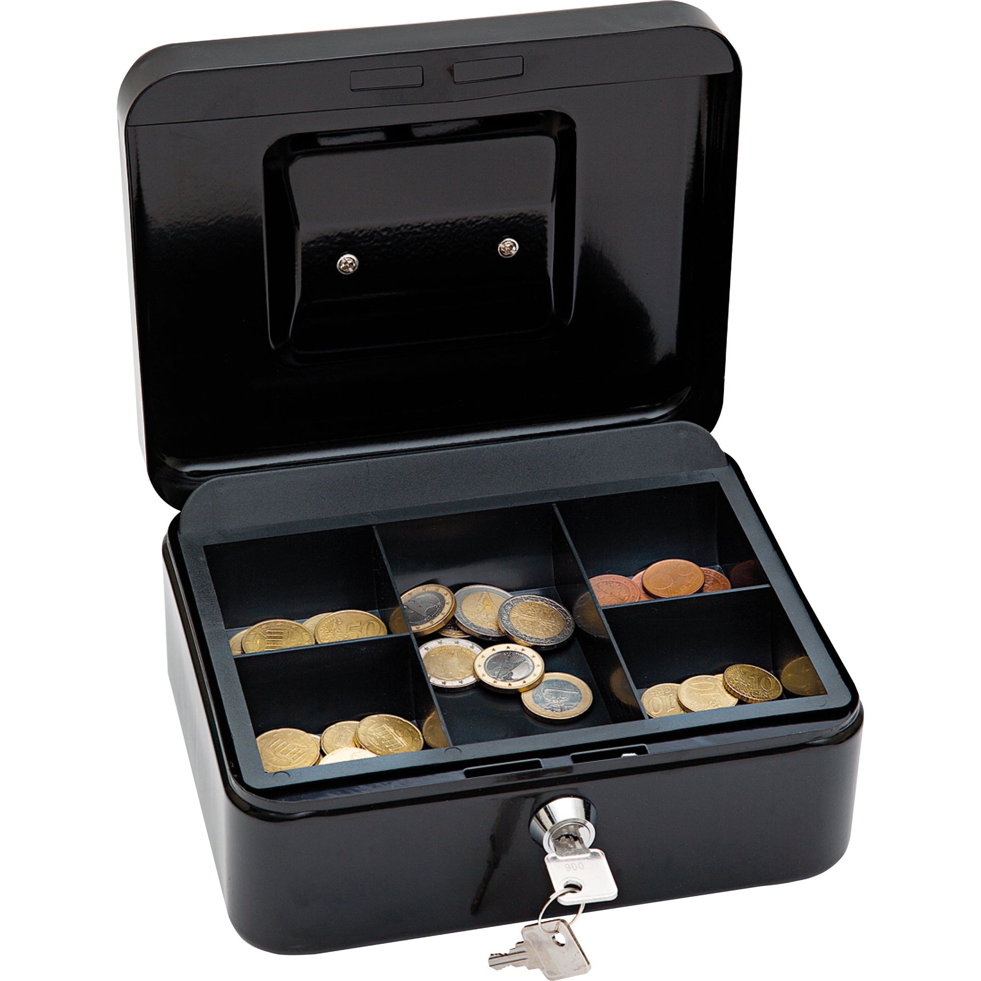Bezeichnung: WEDO® Geldkassette 20 x 9 x 16 cm (B x H x T) 1 Fach für Banknoten 5 Fächer für Hartgeld mit Schloss Stahl schwarz