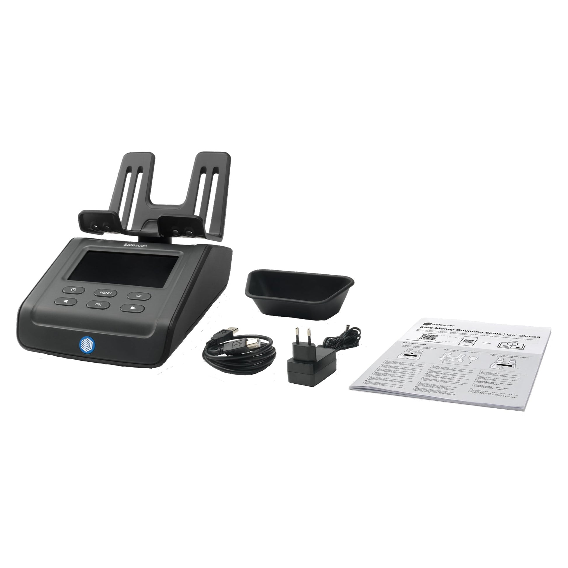 Ausführung der Lieferzusammenstellung: inkl. Geldplattform, Münzbehälter, Netzteil, USB-/MCS-Kabel, Druckerkabel, Broschüre Erste Schritte