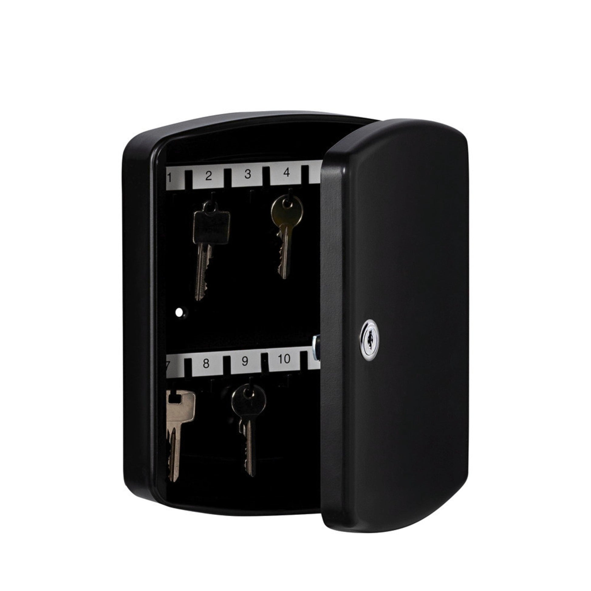 schwarzBewahren Sie Ihre Schlüssel zentral auf mit einer Schlüsselbox. So können Sie lästiges Suchen und das Verlegen der Schlüssel verhindern. Softig abgerundete Form. Hakenabstand: 27 mm.
