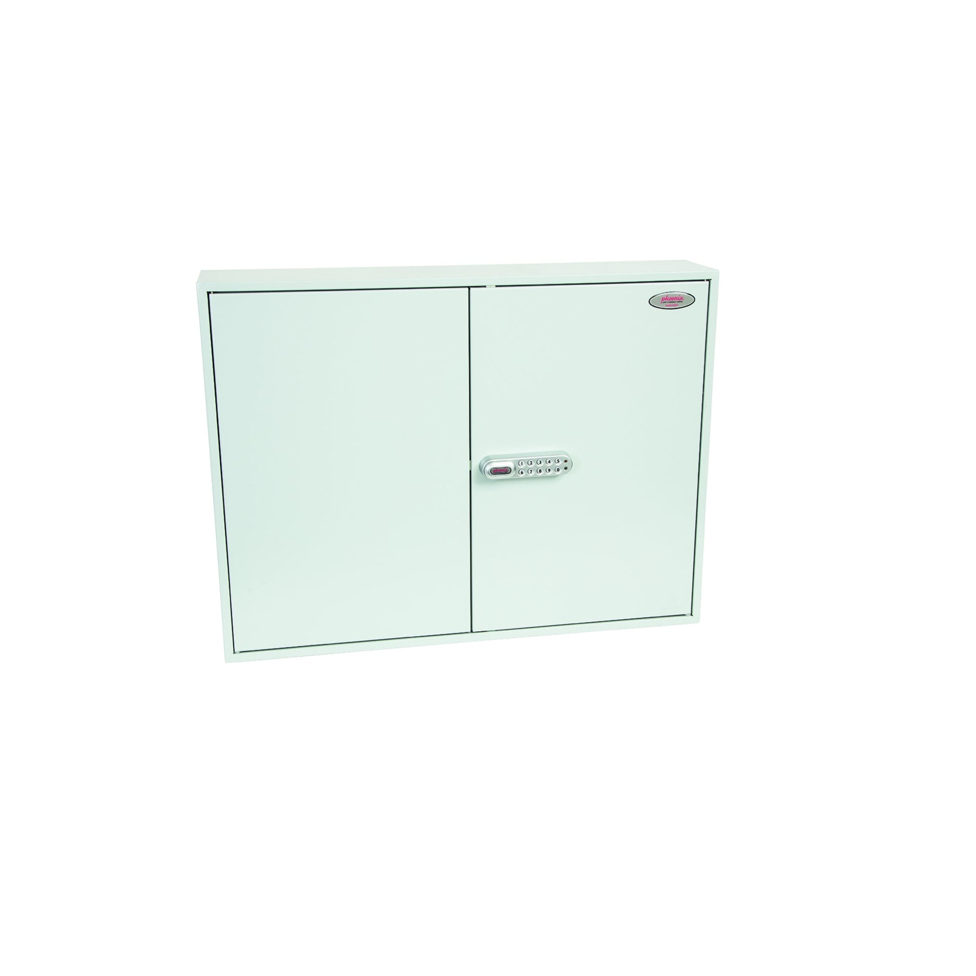 hellgrauZweitüriger, hochwertiger Schlüsselschrank. VERSCHLUSS - Ausgestattet mit einem hochwertigen elektronischen Codeschloss, programmierbar mit einem eigenen 4-stelligen Code des Benutzers, der bei Bedarf einfach geändert werden kann. BESONDERE EIGENSCHAFTEN - Jede Einheit wird mit verstellbaren Hakenstangen und passenden Nummernetiketten geliefert. BEFESTIGUNG - Die Schränke haben vorgebohrte Befestigungslöcher für die Wandmontage. AUSFÜHRUNG - Mit einer hochwertigen, langlebigen Pulverbeschichtung versehen.