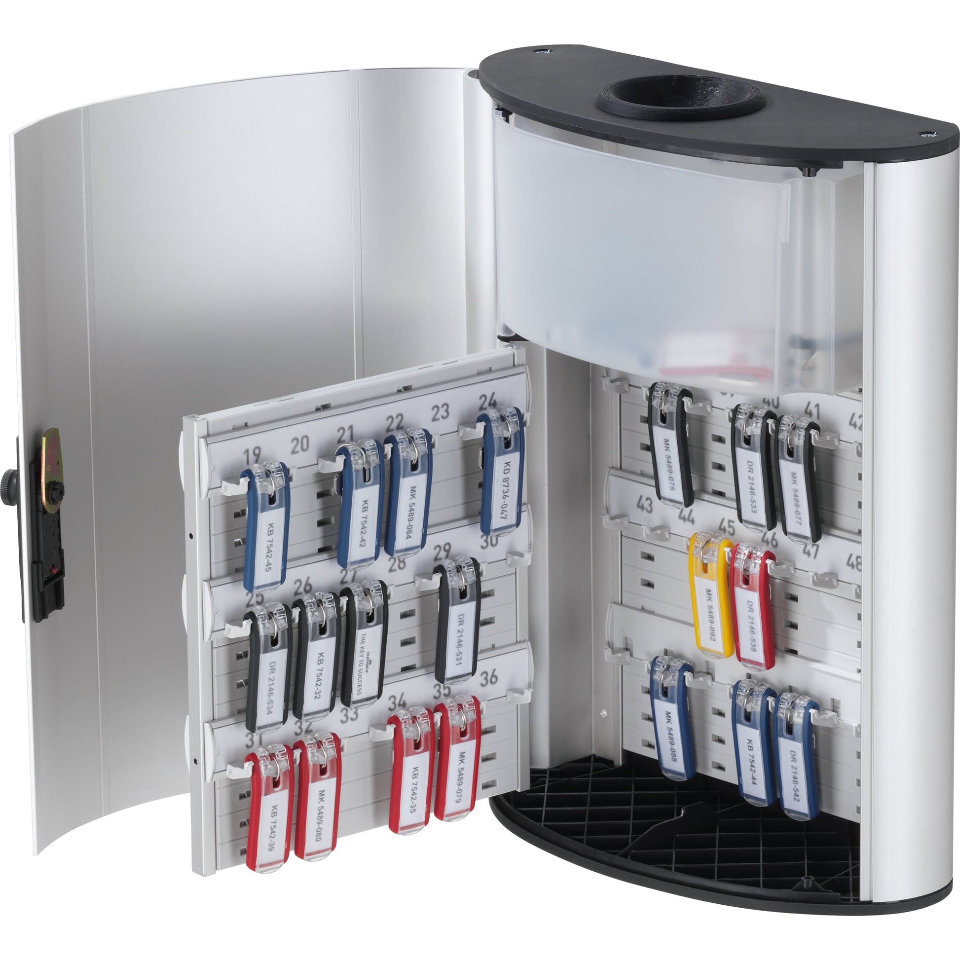 silber metallicMit Einwurfschlitz für die Schlüsselrückgabe an der Oberseite. Nutzbar z.B. in Hotels, Autovermietungen, für Firmenfuhrparks etc.. Mit sicheren Hakenleisten für Schlüsselanhänger KEY CLIP. Variable Steckhöhen der Schlüsselleisten erlauben eine sehr individuelle Nutzung. Permanent sichtbares Beschriftungsfeld bei den Schlüsselanhängern KEY CLIP, da der Schlüssel flach dahinter liegt. Leichter Zugriff, die Tür lässt sich durch einen praktischen Drehverschluss um mehr als 90° öffnen. Mit Zahlenschloss. Einfach an die Wand zu schrauben.