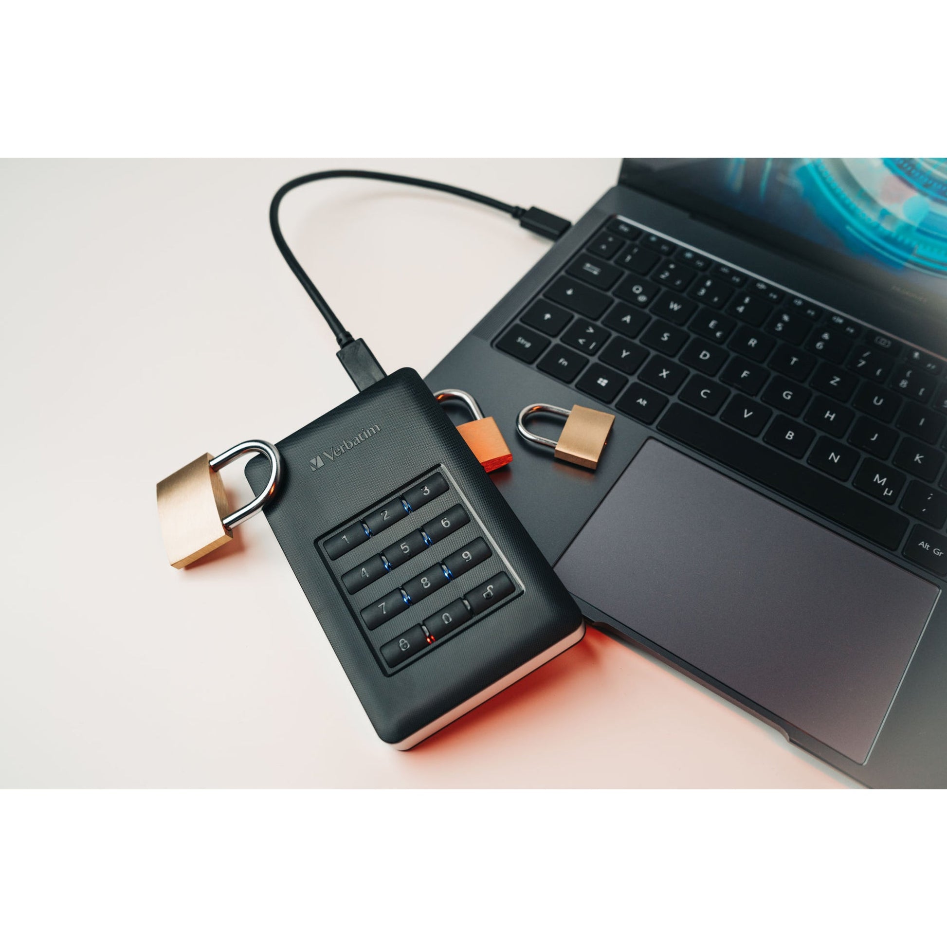 Bezeichnung: Verbatim Festplatte extern Store 'n' Go Secure Portable 123,5 x 11 x 76 mm (B x H x T) USB 3.1 GEN 1 (USB-C) 1 Tbyte