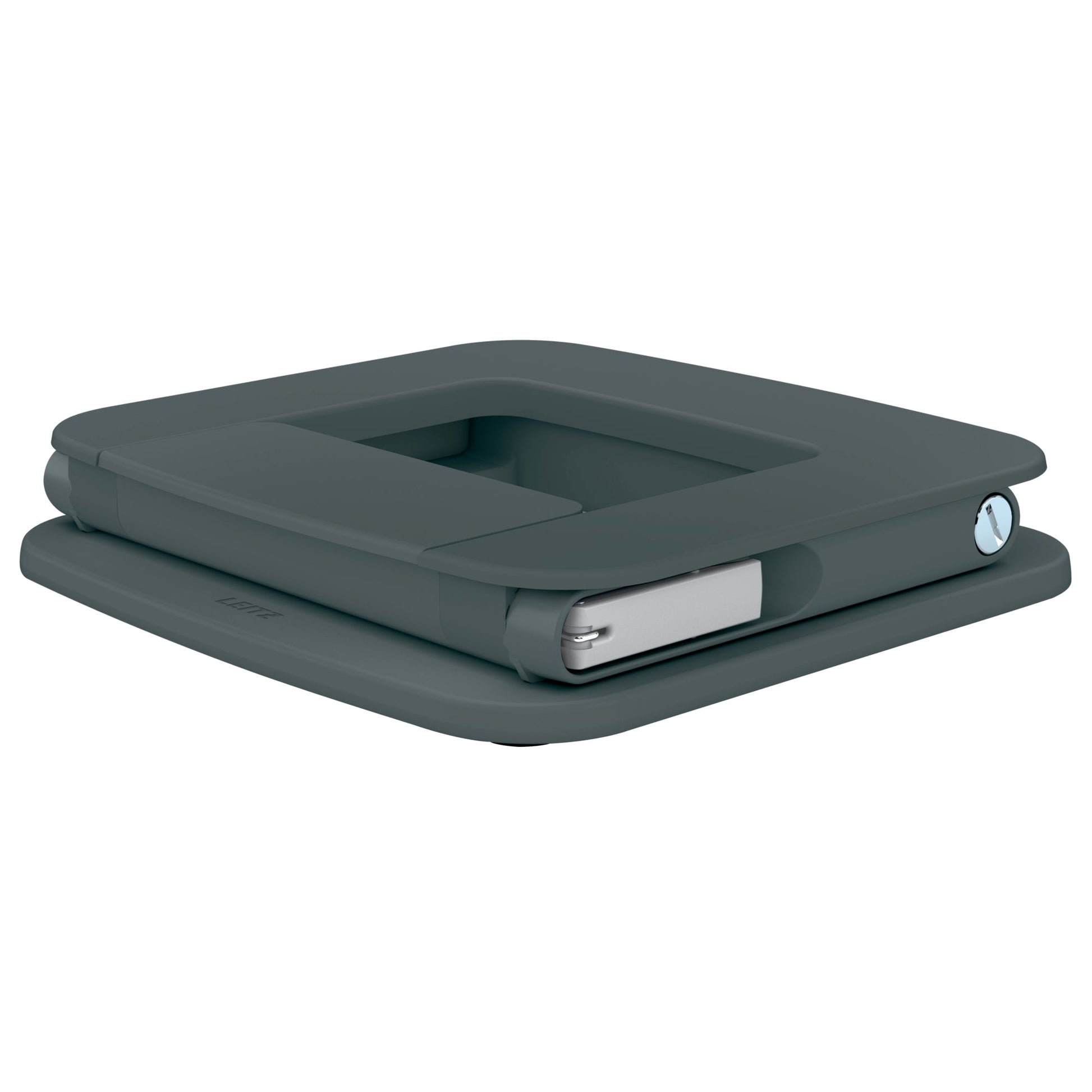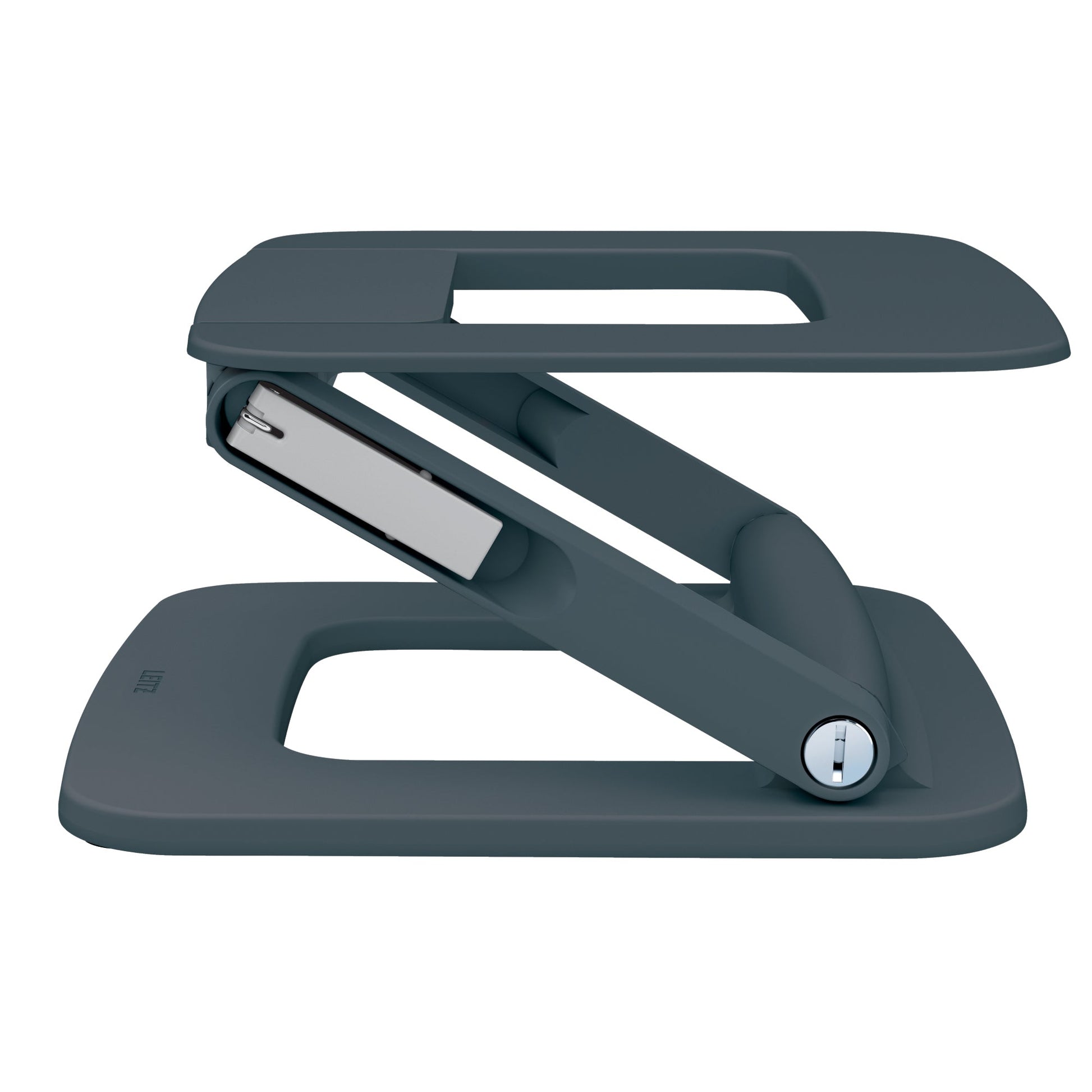 dunkelgrauDer Leitz Ergo Multi-Winkel Laptopständer erhöht den Bildschirm Ihres Laptops auf die perfekte ergonomische Höhe, um Ihren Sehkomfort zu erhöhen und Ihre Körperhaltung zu verbessern. Verschiedene Höhen- und Winkelkombinationen, einschließlich horizontaler Ausrichtung, mit geringer Stellfläche für kompakte Schreibtische. Der Laptopständer wird aus 80% recyceltem Post-Consumer-Kunststoff hergestellt und da die Metallteile vom Kunststoff getrennt werden können, ist er zu 100% recycelbar. Das gemeinsam mit der hohen Qualität und der Langlebigkeit hilft dabei, die Ressourcen der Erde zu schonen. Die Verwendung eines Laptopständers fördert auch den Luftstrom und hält den Laptop-Akku und andere Komponenten kühl, um ein hohes Leistungsniveau aufrechtzuerhalten. Mit seinem minimalistischen Design und der matten Farbe verbessert dieser elegante Laptopständer Gesundheit und Wohlbefinden, indem er mühelos die perfekte aktive Arbeitsumgebung schafft. Geprüft und empfohlen vom IGR, dem Institut für Gesundheit und Ergonomie, nach DIN 26800 EN ISO 15537. Der integrierte Haken bietet einen sicheren und stabilen Halt, klappen Sie den Haken für eine sichere Nutzung in horizontaler Laptop-Position oder bei flacher Lagerung ein, Gummifüße verhindern ein Verrutschen des Ständers auf dem Schreibtisch. Einfaches Einstellen der Höhe, um Ihren Laptop-Bildschirm in der perfekten ergonomischen Betrachtungsposition zu halten, sichere Höheneinstellung dank 2 Hebeln. Lässt sich bei Nichtgebrauch schnell und einfach zusammenfalten und verstauen, keine Montage erforderlich. Laptopständer halten den Akku und andere Komponenten kühl, indem sie den Luftstrom fördern.