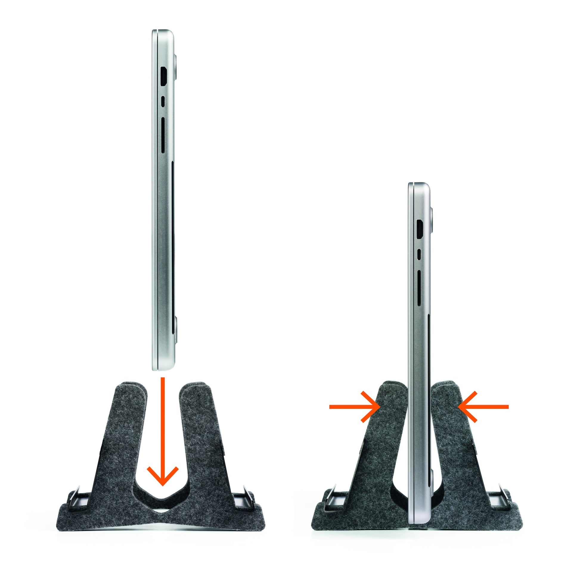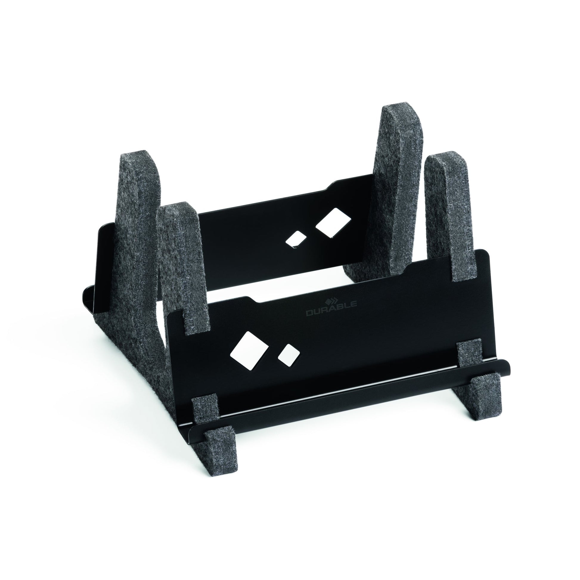 Bezeichnung: DURABLE Notebookständer VERTICAL EFFECT nicht höhenverstellbar Metall/PET-Filz, 60 % recycelt grau/schwarz