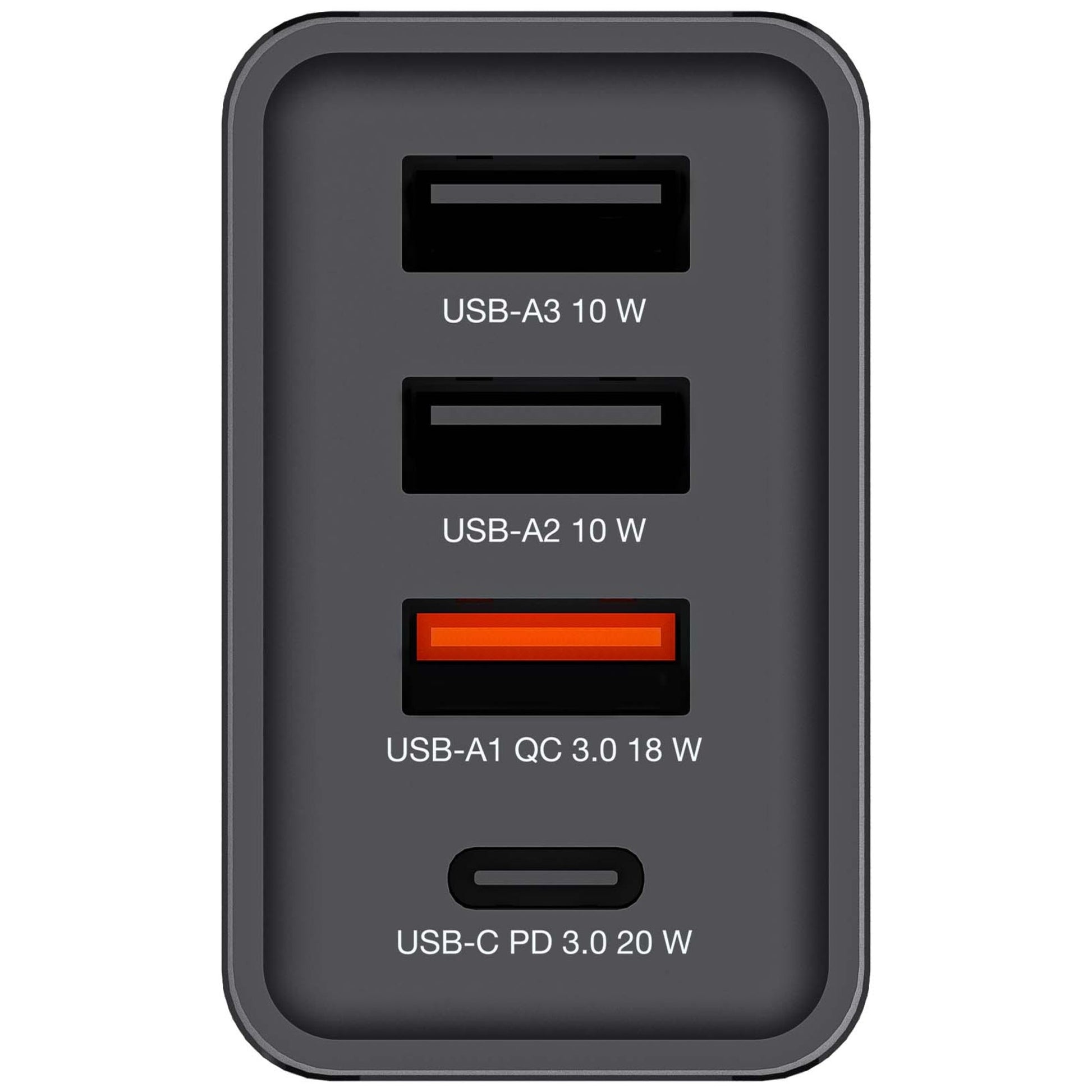 Anschlussart: 2 x USB-A (max. 10 W), 1 x USB-A (QC, max. 18 W), 1 x USB-C (PD, max. 20 W)