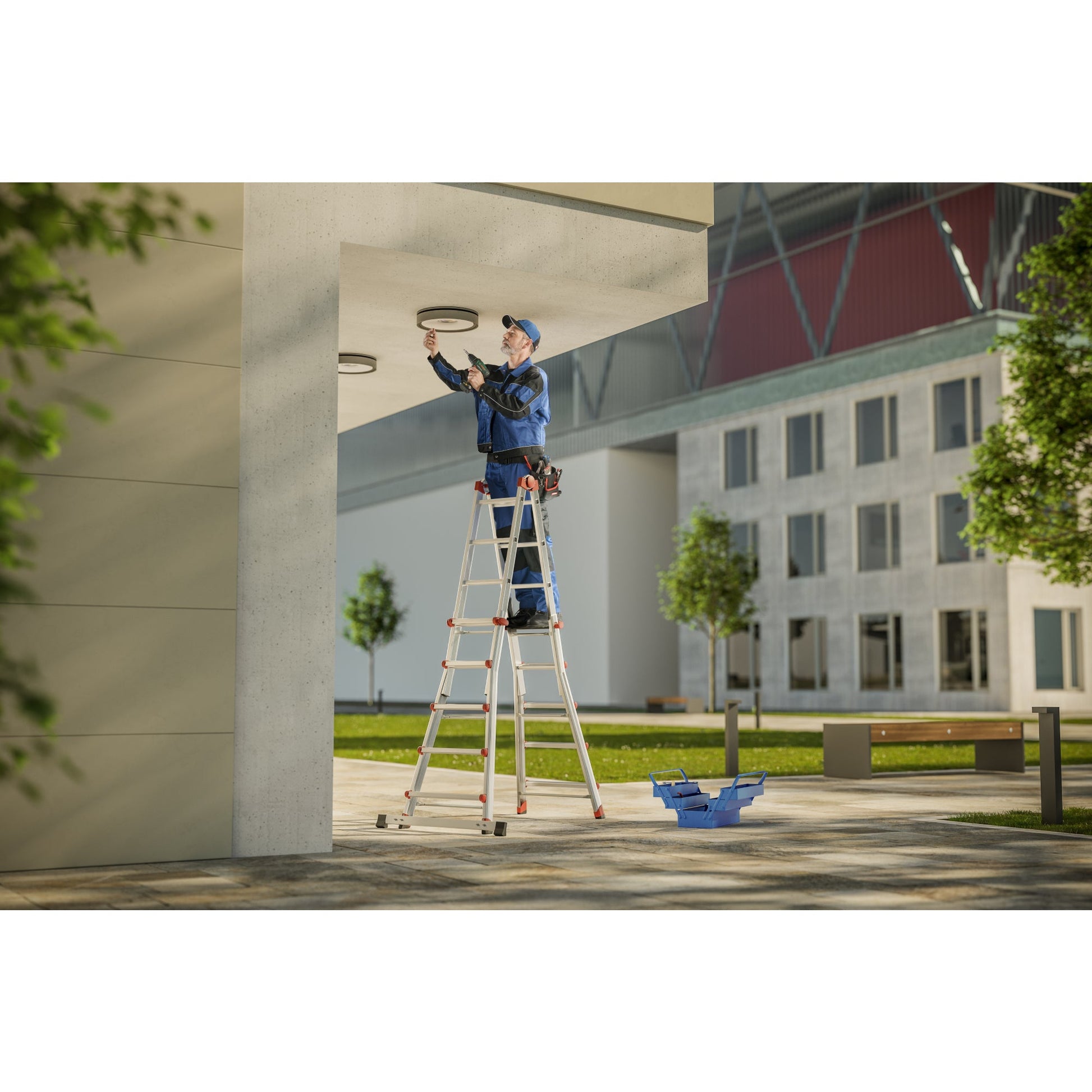 silberVerwendbar als Anlege- und Schiebeleiter, beidseitige Steh- und Treppenleiter. Höhe einstellbar durch die seitlichen Blockiergriffe der einzelnen Niveaus. 2 Sicherheitsgelenke (ent- und verriegelbar) für die Einstellung in Steh- und Anlegeleiter. Sicher, flexibel, variabel. Automatisches Blockiersystem. Sprosse für Sprosse höhenverstellbar. Verwendbar als Anlege- und Schiebeleiter, beidseitige Steh- und Treppenleiter. Höhe einstellbar durch die seitlichen Blockiergriffe der einzelnen Niveaus. 2 Sicherheitsgelenke (ent- und verriegelbar) für die Einstellung in Steh- und Anlegeleiter. Sicher, flexibel, variabel. Automatisches Blockiersystem. Sprosse für Sprosse höhenverstellbar.