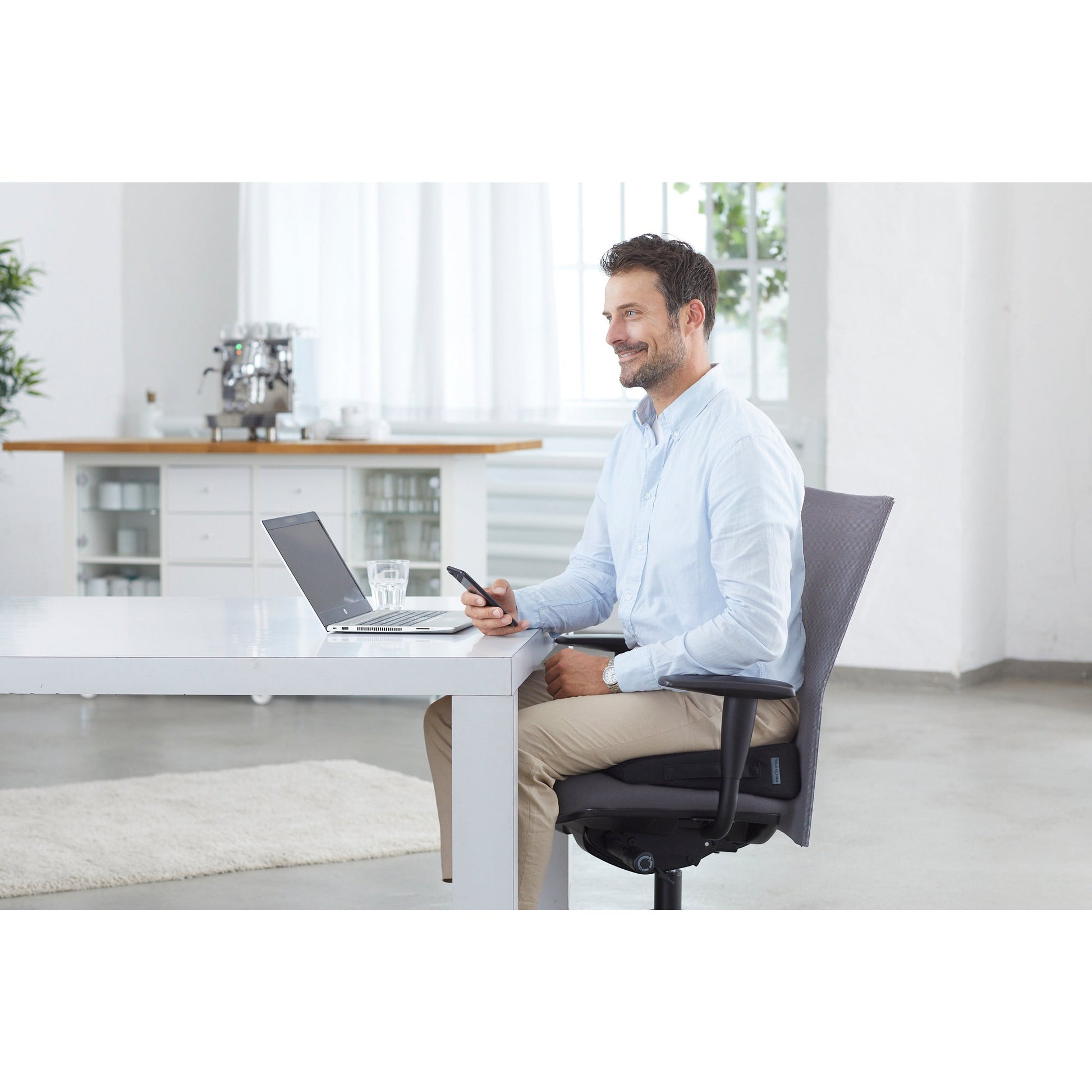 schwarzDas Wärme-Keilkissen OL 300 von medisana ermöglicht eine 2in1 Anwendung als Sitzkissen oder alternativ vertikal als Lendenwirbelstütze. Seine zuschaltbare Wärmefunktion ist mit drei wählbaren Temperaturstufen ausgestattet. Der Kern aus Schaumstoff garantiert dabei einen angenehmen Sitzkomfort. Der Bezug aus pflegeleichtem Material ist abnehmbar und kann in der Maschine gewaschen werden. Dank seiner ergonomischen Form trägt das medisana Wärme-Keilkissen OL 300 zu einer Verbesserung der Sitzhaltung bei. Es stimuliert aktiv die Rückenmuskulatur, fördert die Durchblutung und beugt Fehlhaltungen der Wirbelsäule vor, indem es die Haltung automatisch korrigiert. In Sachen Sicherheit weiß das Wärme-Keilkissen OL 300 ebenfalls zu überzeugen, denn es ist mit einem Sicherheitssystem mit einer automatischen Abschaltung nach 180 Minuten ausgestattet. Das medisana Wärme-Keilkissen OL 300 ist perfekt für das Büro geeignet. Dank seines seitlichen Tragegriffs sowie dem integrierten Bedienfeld ist es besonders handlich und dabei problemlos portabel – damit Sie auch am Arbeitsplatz eine geeignete Sitzhaltung einnehmen können und zusätzlich ein wärmendes Wohlgefühl spüren.