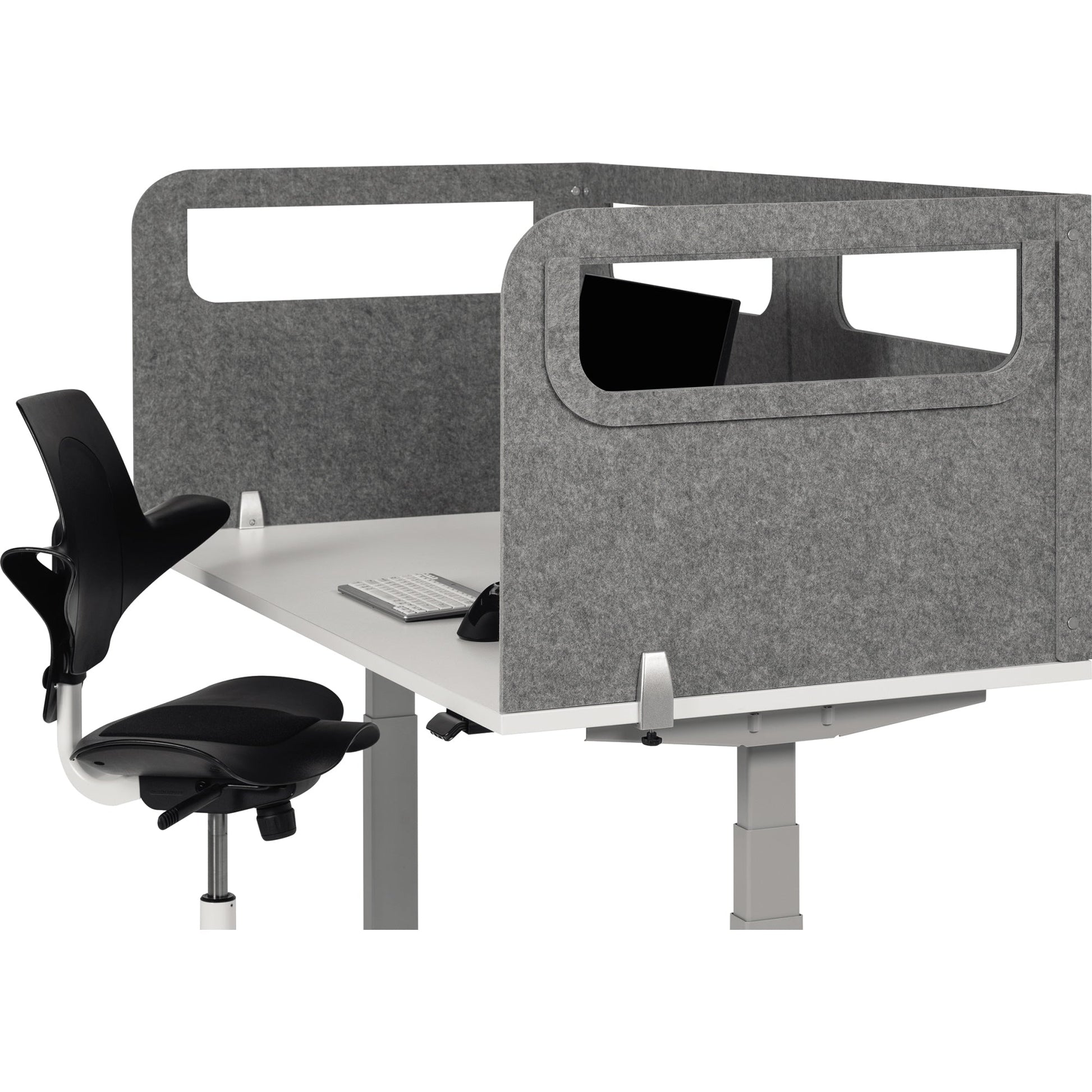 Bezeichnung: BakkerElkhuizen Tischtrennwand BE Safety Screens U-Shape 160 x 60 x 80 cm (B x H x T) 1cm Schallabsorberklasse: B schwer entflammbar 1,7kg PET, 100 % recycelt grau