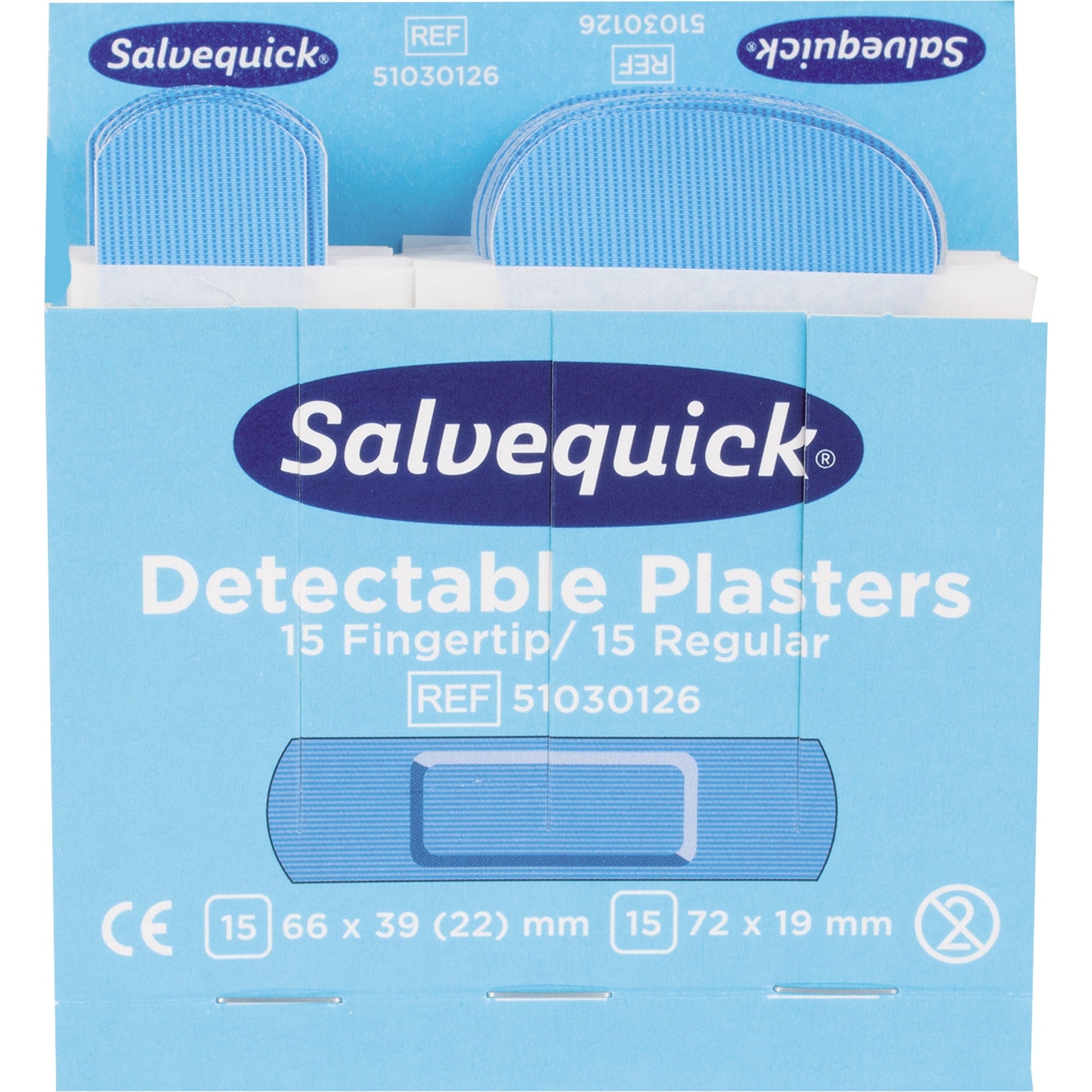 Bezeichnung: Salvequick Nachfüllset Pflasterspender detektierbar Refill 51030126 Salvequick Pflasterspender Blue Detectable 1009072 15 St. 39 x 66 cm, 15 St. 19 x 72 cm 30 St./Pack.