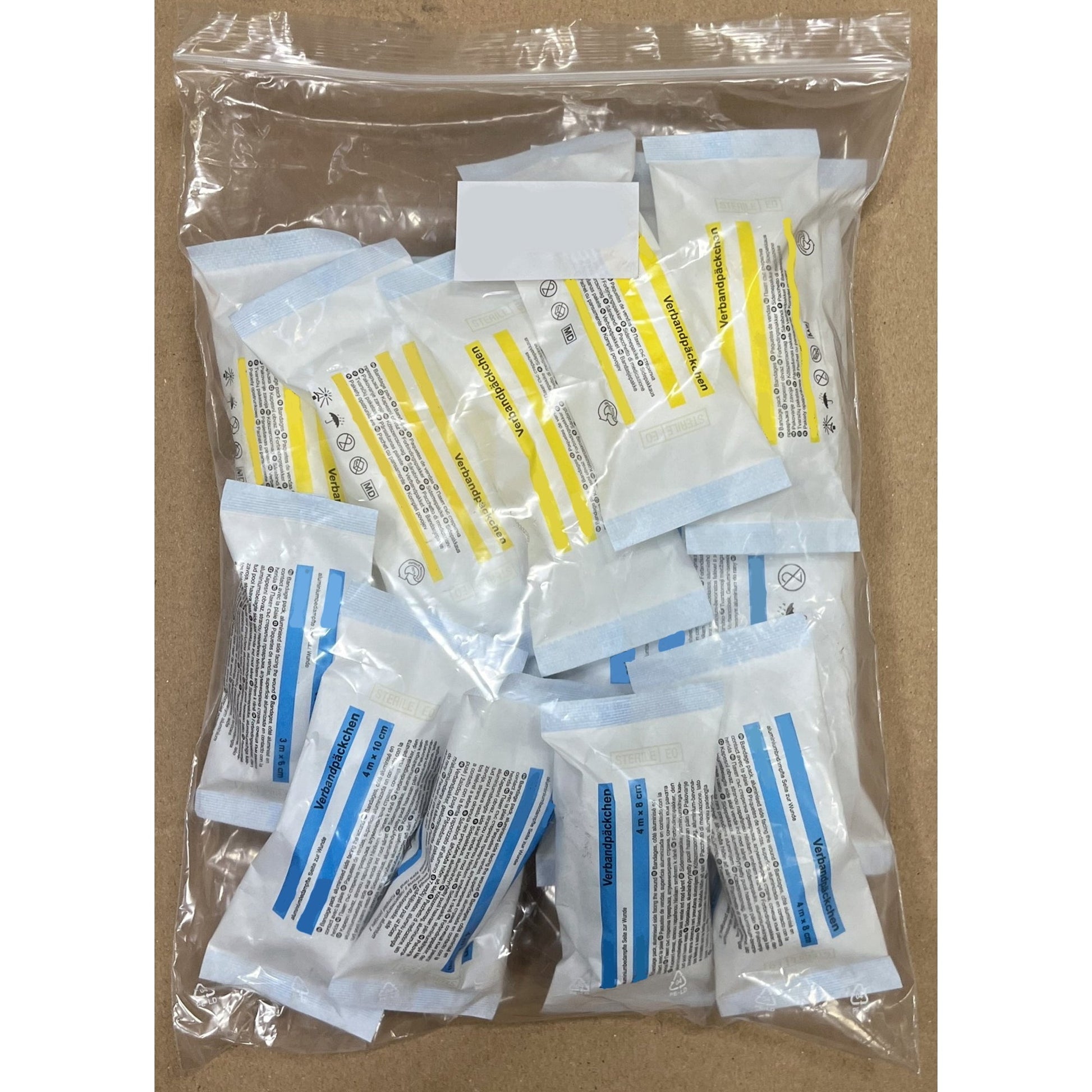 Inhalt: 1 x PE-Druckverschlussbeutel 300 x 400 x 0,05 mm, 1 x DermaCare® Verbandpäckchen DIN klein, 3 x DermaCare® Verbandpäckchen DIN mittel, 1 x DermaCare® Verbandpäckchen DIN groß, 1 x Verbandtuch DIN SO 60 x 80 cm, 1 x aluderm® Verbandtuch 60 x 80 cm, 6 x aluderm® Kompresse einzeln 10 x 10 cm, 4 x aluderm® Kompresse einzeln 10 x 10 cm, 1 x aluderm® Kompresse einzeln 10 x 10 cm, 3 x aluderm® Verbandpäckchen DIN mittel, 1 x aluderm® Verbandpäckchen DIN groß, 6 x DERMOTEKT® Kompresse V 10 x 10 cm einzeln.