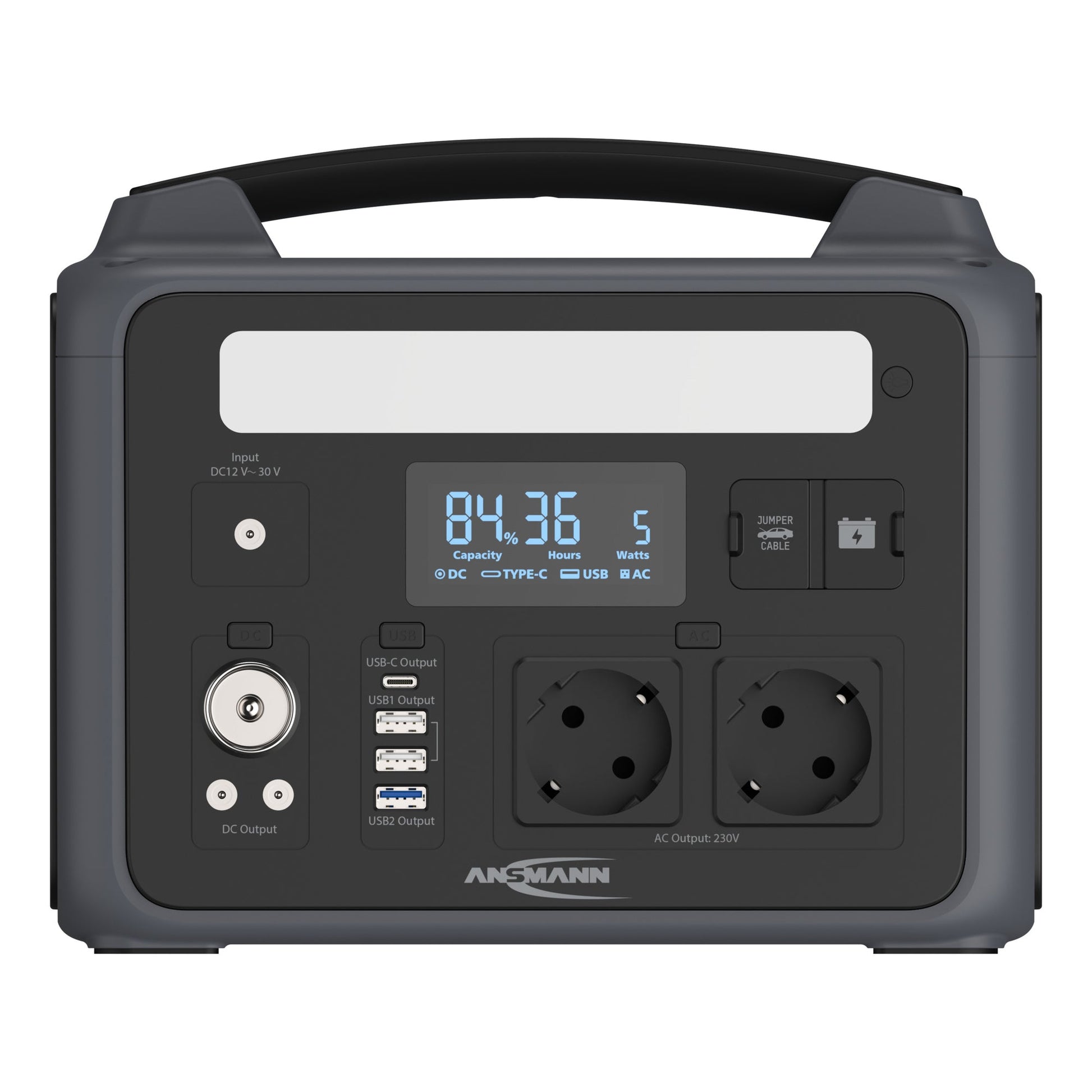 schwarzDie Ansmann Powerstation ist Ihre tragbare Steckdose, eine Powerbank für alle Geräte, der Helfer in der Not bei Stromausfall, die Stromversorgung Ihres Gartenhäuschens oder unterwegs auf der Urlaubsreise. Die Anwendungsbeispiele könnten fast unendlich fortgesetzt werden. Wie bei einem herkömmlichen Stromgenerator können Sie Ihre Geräte unabhängig vom Stromnetz betreiben, jedoch ohne Benzin oder Diesel, ohne Qualm und Gestank, ohne dröhnendem Lärm! Die Powerstation kann sowohl im Haus als auch außerhalb verwendet werden und ist Ihre sichere Bank bei der unabhängigen Stromversorgung! Nutzen Sie verschiedene Möglichkeiten, um die Powerstation aufzufüllen, für jede Gelegenheit die passende Schnittstelle: An der Steckdose, im Kraftfahrzeug, per USB-C PD Anschluss oder am Solarpanel Eingang. Kurzfristige Spitzenleistung 1.200 Watt.