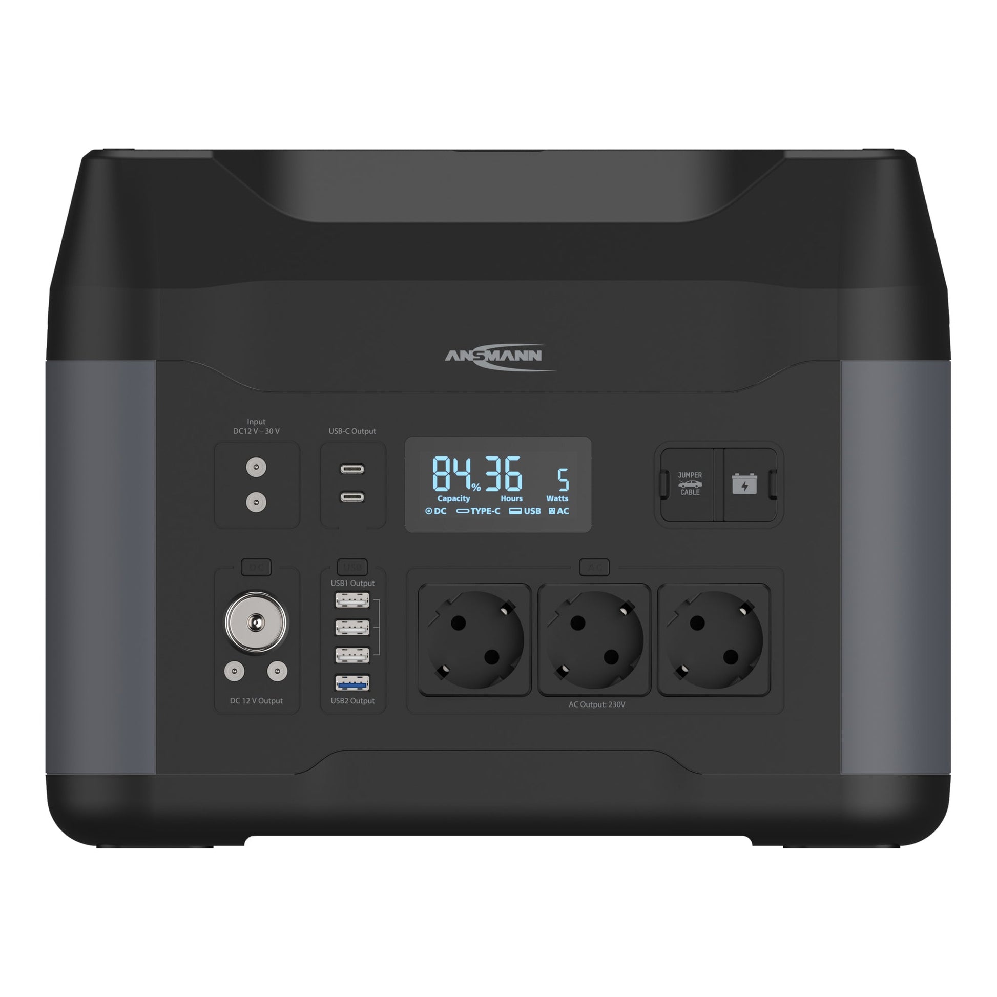 Bezeichnung: ANSMANN Powerstation PS2200AC 360 x 270 x 280 mm (B x H x T) Anschlussart: 3 x AC-Steckdosen, 2 x USB-C PD, 3 x USB A, 1 x USB-A QC, 1 x Autoadapter, 2 x DC5521,12 V/10 A, max. 120 W, 1 x Jump-Starter 12 V Leistungsaufnahme: 200W