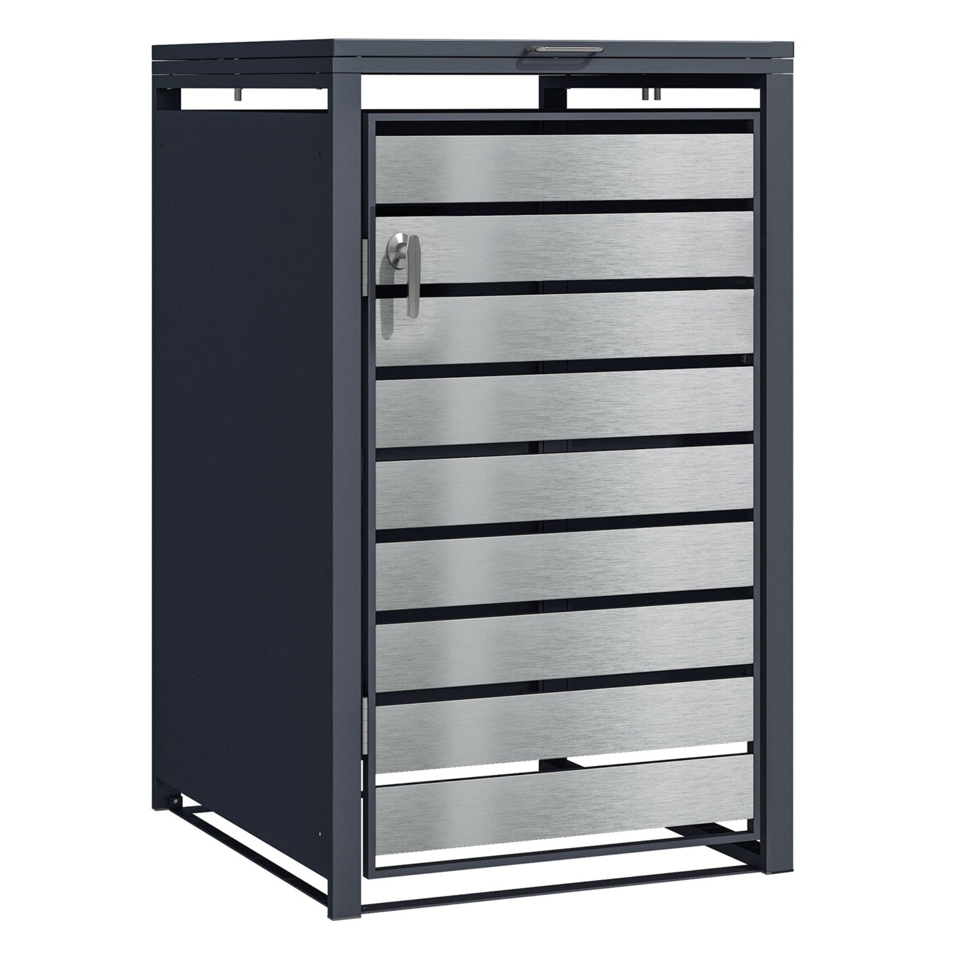 Bezeichnung: Phoenix Mülltonnenbox 68 x 116 x 80 cm (B x H x T) Schlüsselschloss Stahl, verzinkt, pulverbeschichtet silber 30,5kg