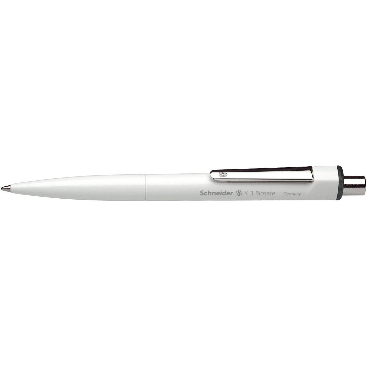 Bezeichnung: Schneider Kugelschreiber K 3 Biosafe 0,6mm schwarz Mine auswechselbar dokumentenecht Schaftfarbe: weiß