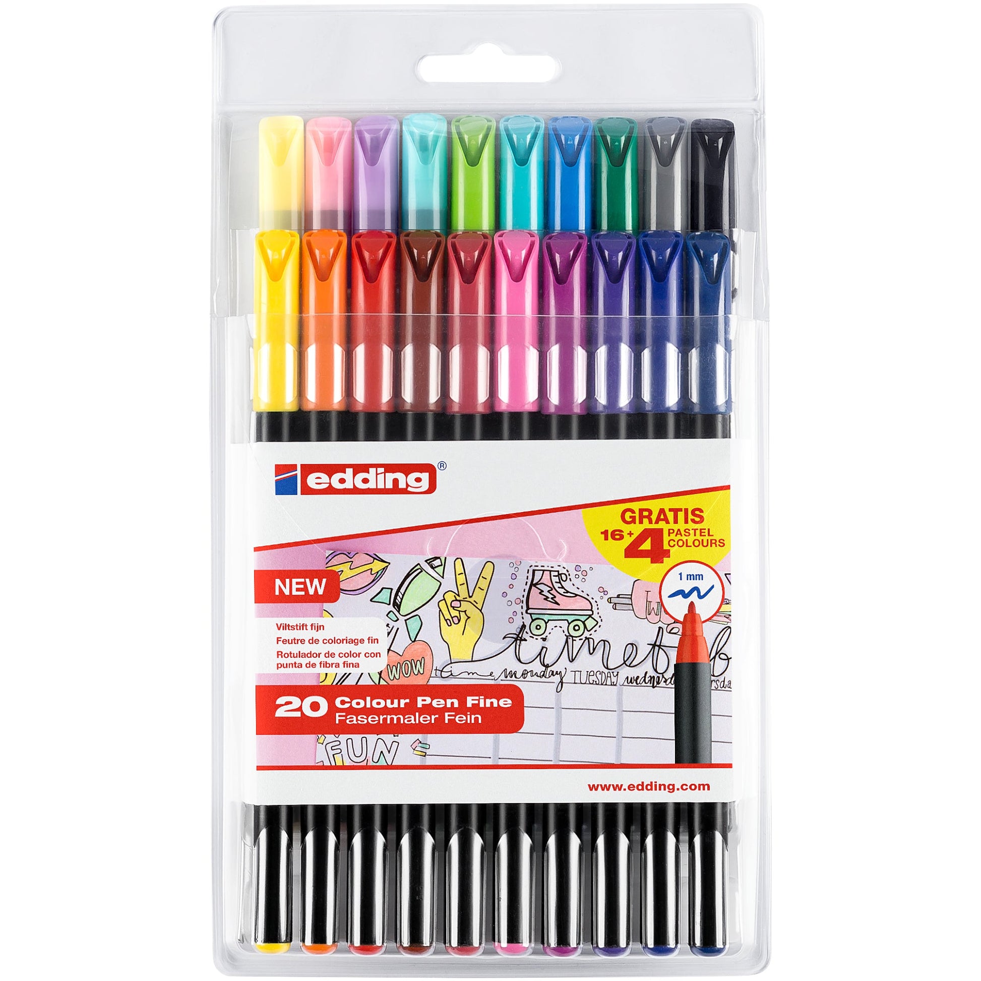 Bezeichnung: edding Fasermaler 1200 colourpen 1mm farbig sortiert nicht auswaschbar 16+4 St./Pack.