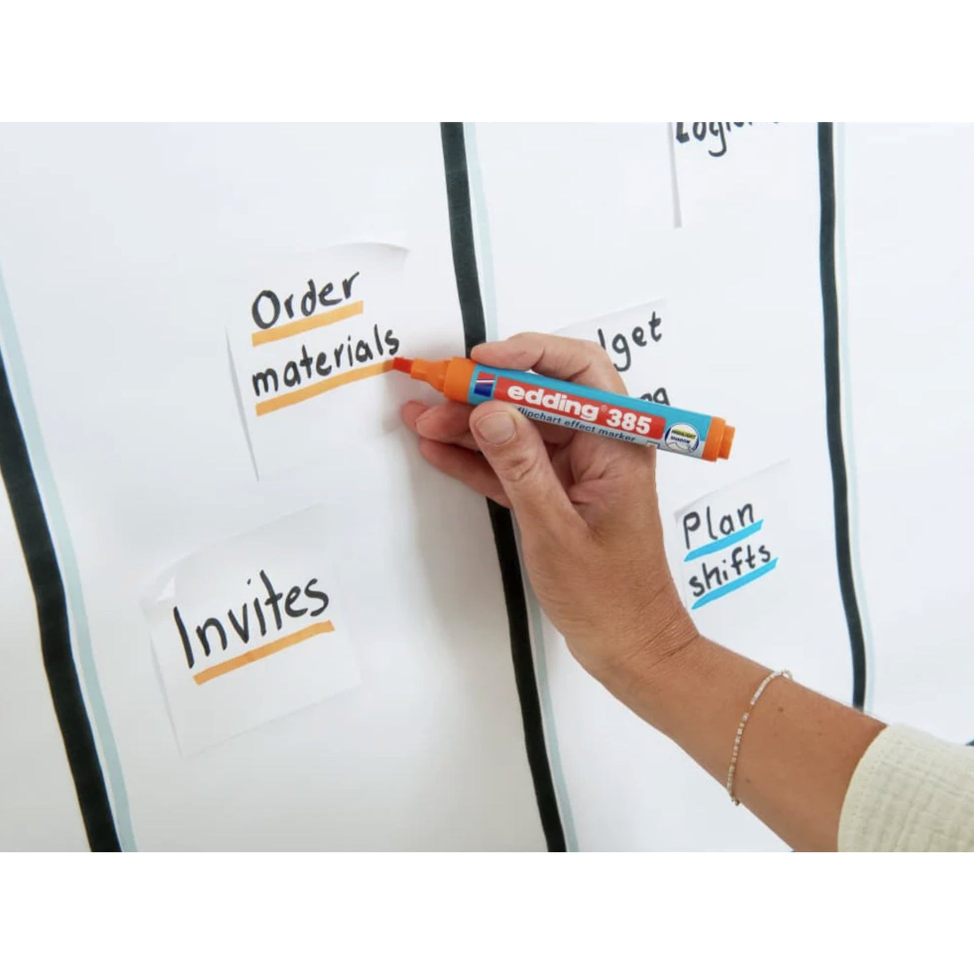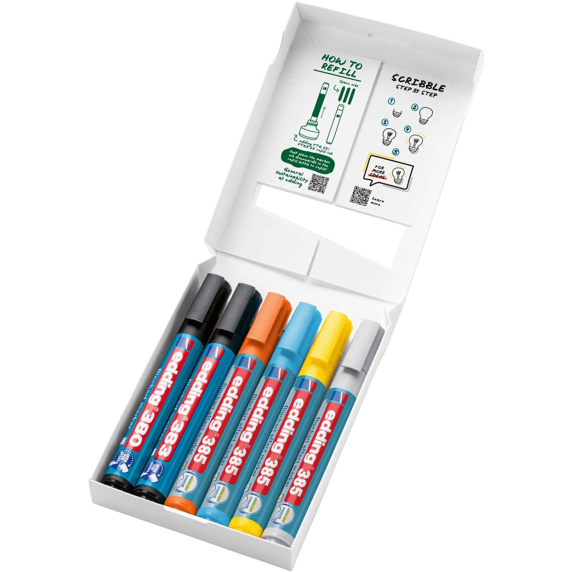 Bezeichnung: edding Schreibgeräteset Highlighting & Shading Set 4 x Flipchartmarker 385 effect orange, gelb, hellblau, silbergrau, schwarz 1-5 mm, je 1 x Flipchartmarker 380 schwarz 1,5-3 mm, Flipchartmarker 383 schwarz 1-5 mm farbig sortiert 6 St./Pack.