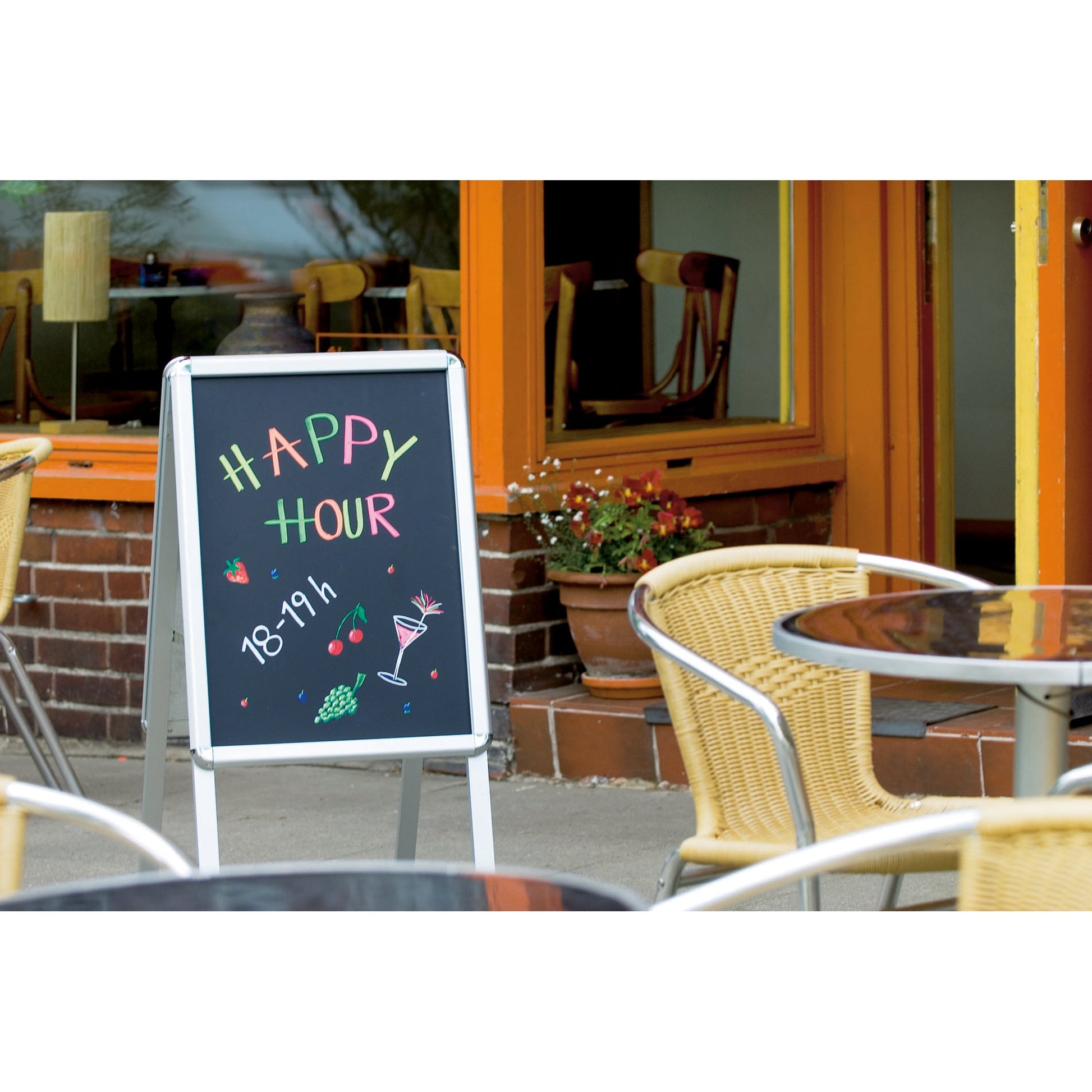 neonrosaZum Gestalten, Verzieren und Beschriften von z.B. Fenstern, dunklen Tafeln, Glas und Spiegeln. Ist von fast allen geschlossenen Oberflächen feucht abwischbar.