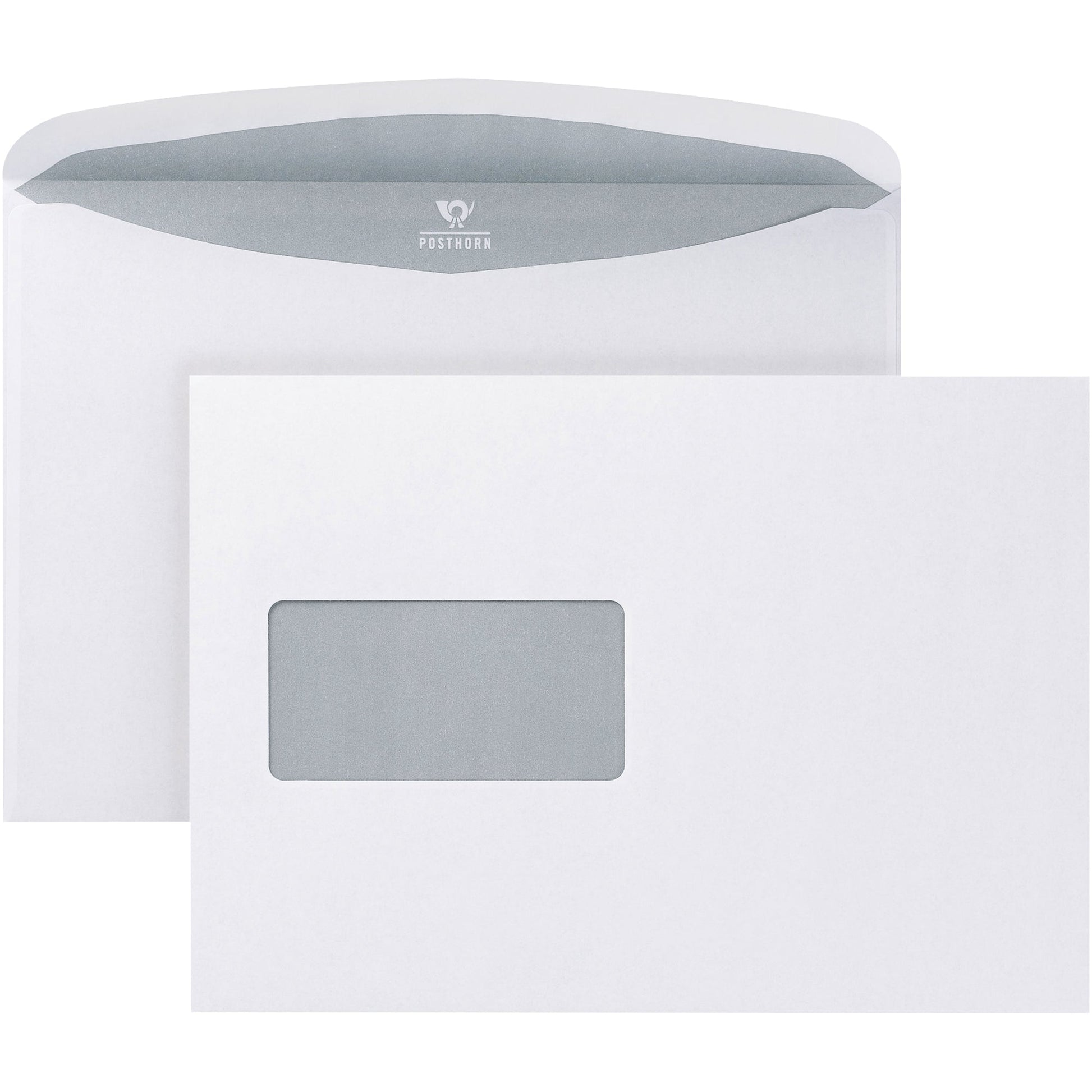 Bezeichnung: POSTHORN Versandtasche Trapez DIN C5 162 x 229 mm (B x H) mit gummierter Klappe mit Fenster 80g/m² weiß 500 St./Pack.