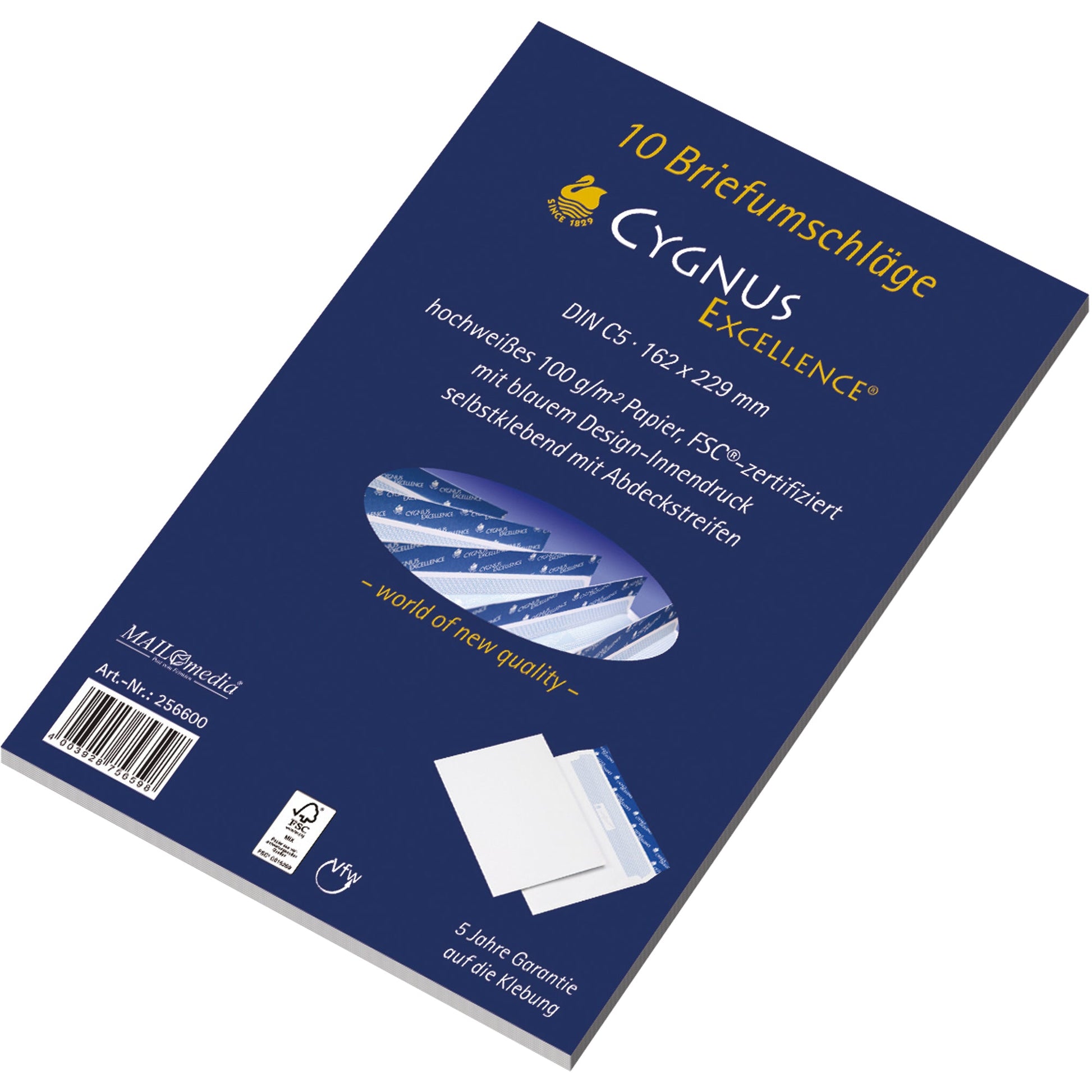 Bezeichnung: Cygnus Excellence® Versandtasche DIN C5 229 x 162 mm (B x H) mit Haftklebung ohne Fenster 100g/m² hochweiß 10 St./Pack.
