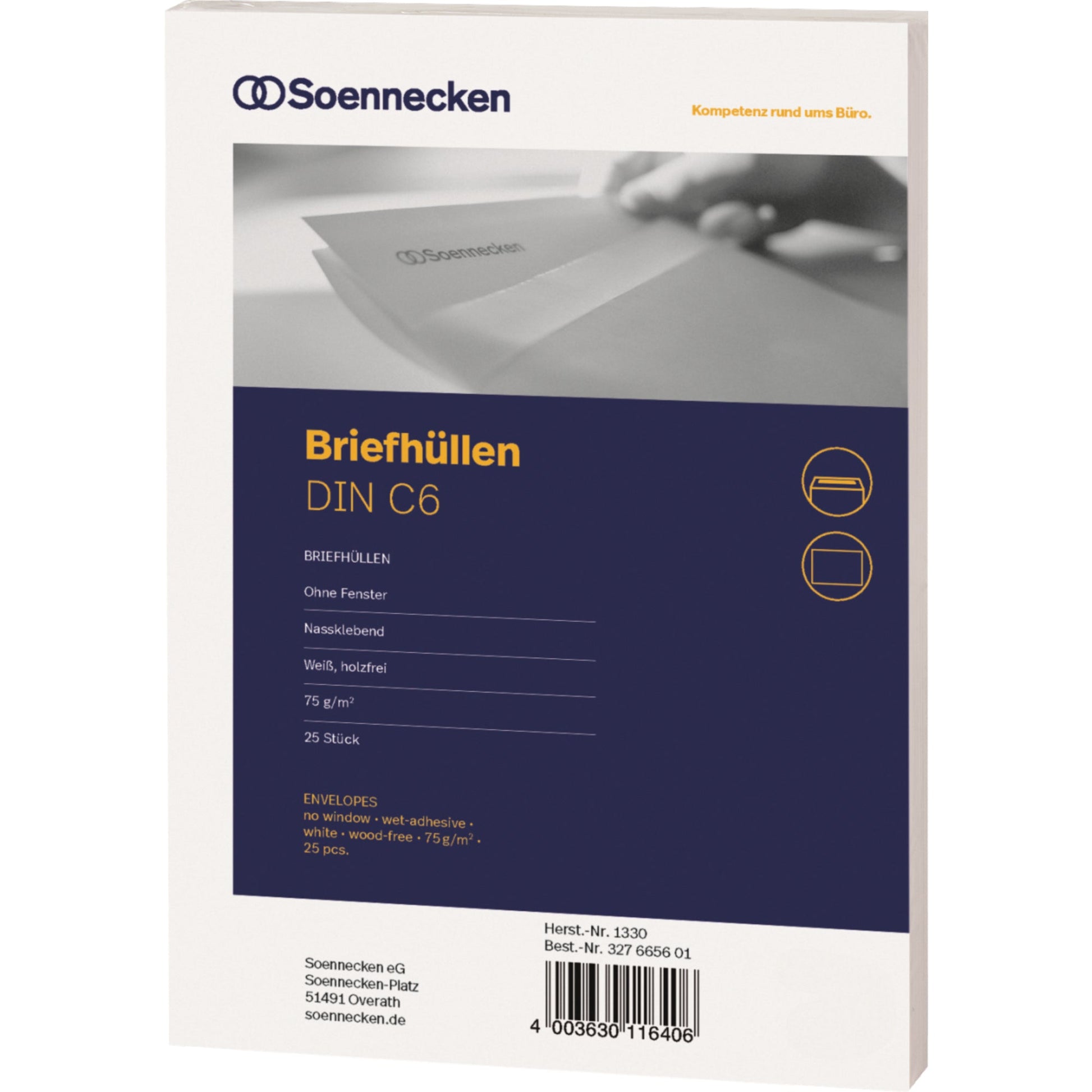 Bezeichnung: Soennecken Briefumschlag DIN C6 162 x 114 mm (B x H) mit gummierter Klappe ohne Fenster 75g/m² weiß 25 St./Pack.