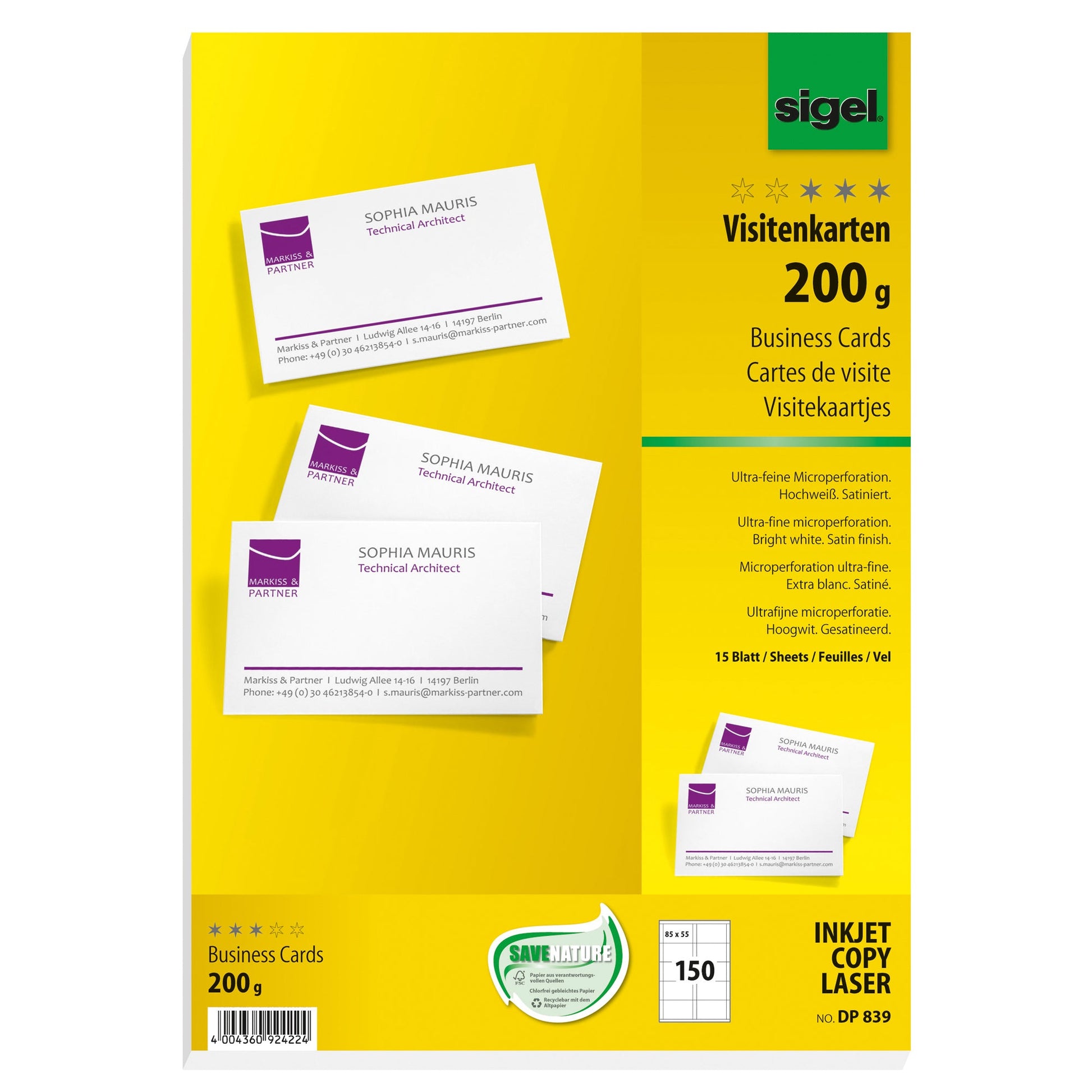 Bezeichnung: SIGEL Visitenkarte DIN A4 200g/m² hochweiß 15 Bl./Pack. 150 St./Pack.