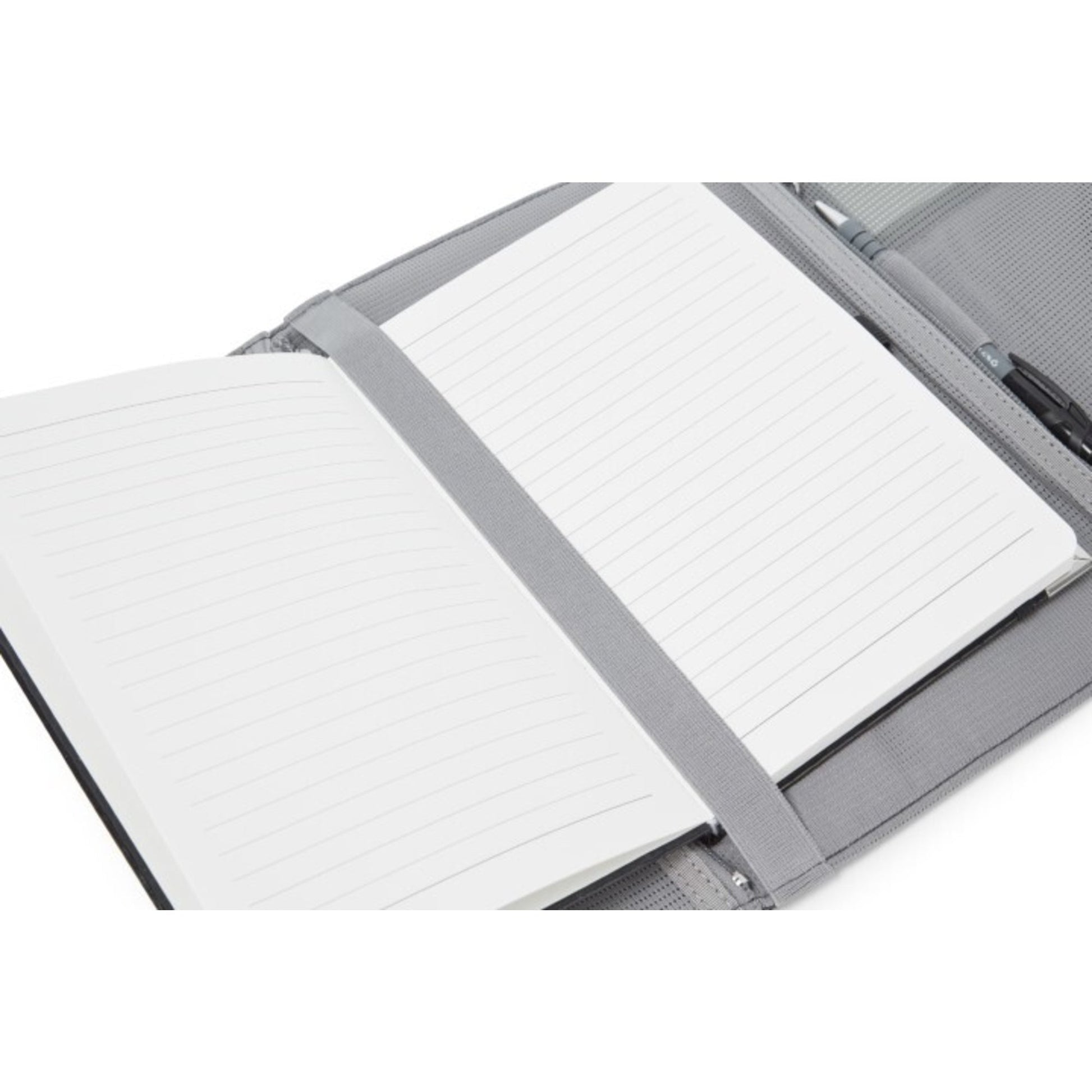 Ausführung des Inhalts (bzgl. der Hauptausstattungsteile): 2 Innentaschen mit Reißverschluss, 2 Taschen für kleinere Gegenstände und Visitenkarten, verstellbarer Reißverschluss für Erweiterung, Gummiband zum Fixieren von Notizbüchern