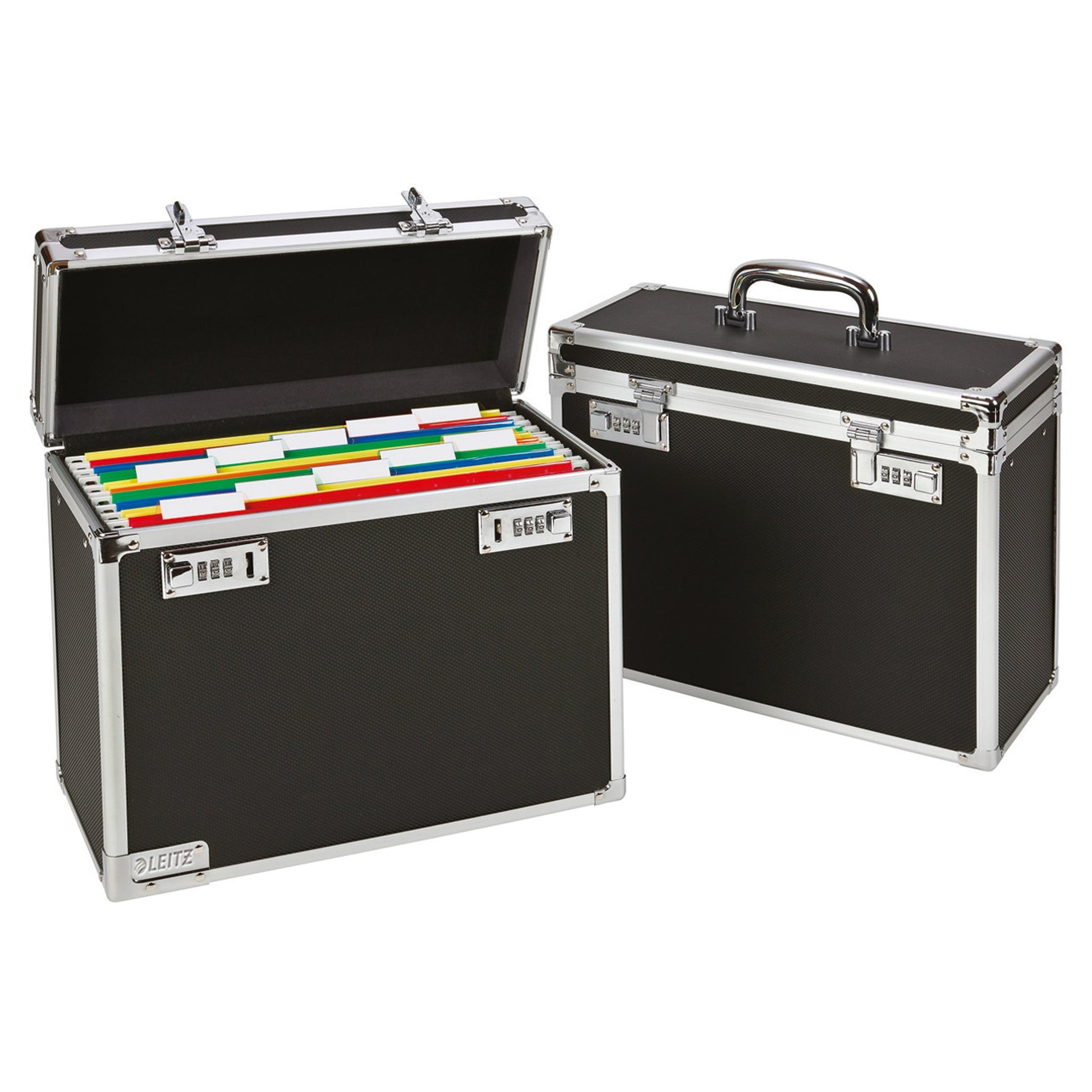Bezeichnung: Leitz Hängemappenbox DIN A4 15 Hängemappen Holz, kunststoffbeschichtet schwarz/chrom