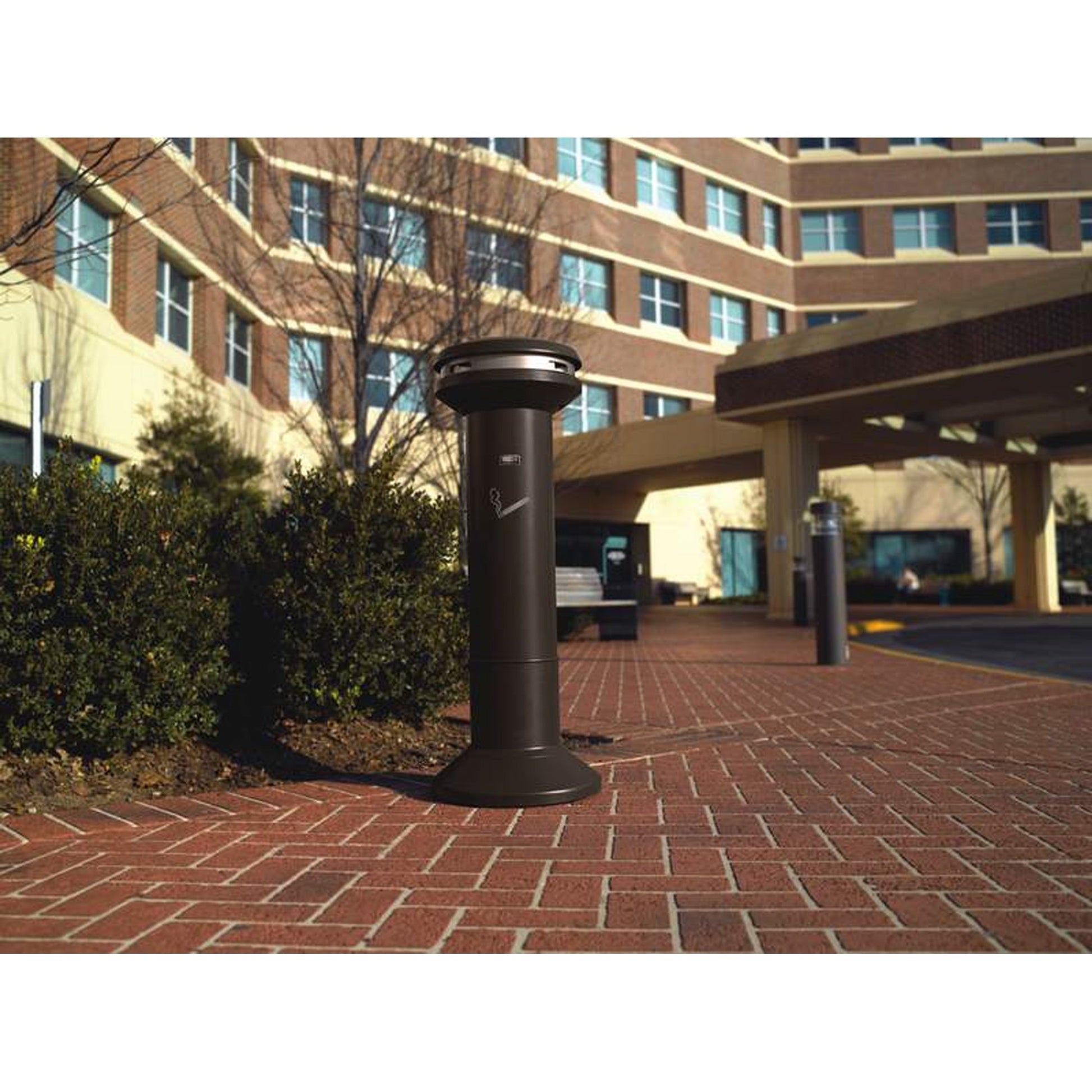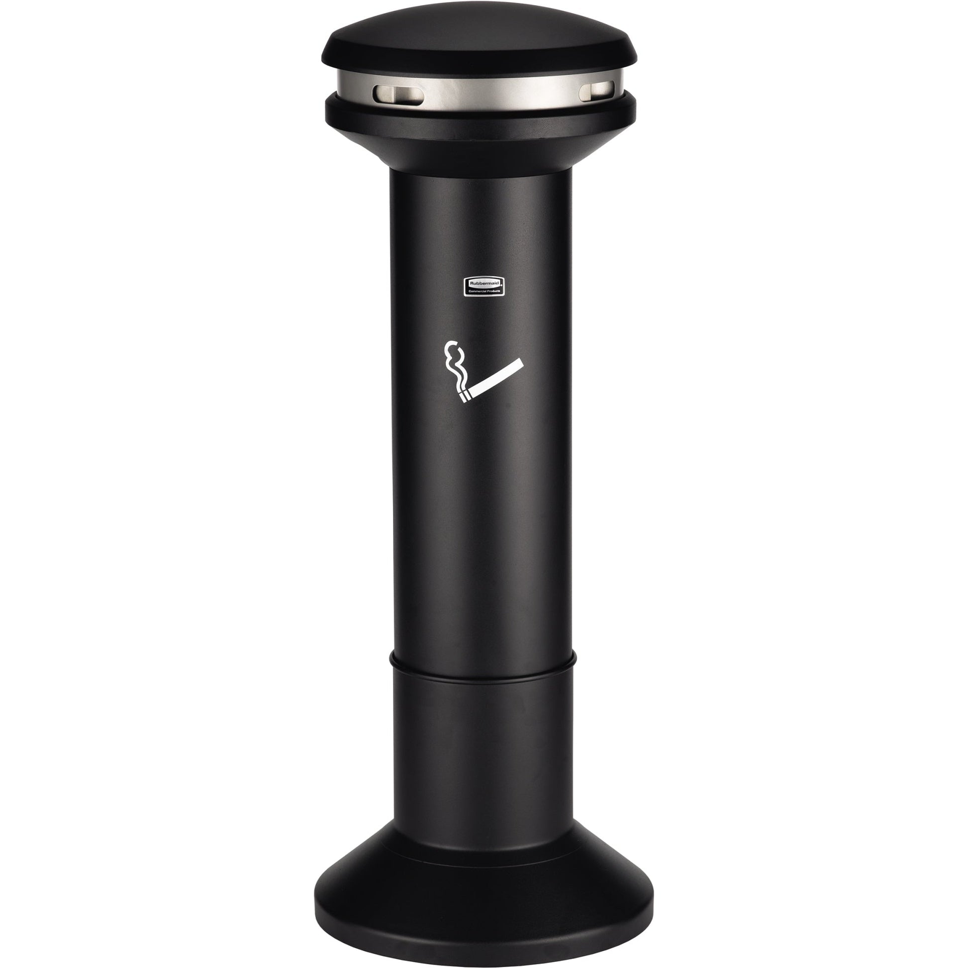 schwarzDie Infinity™ Smoker Station mit hohem Fassungsvermögen von Rubbermaid Commercial bietet ein elegantes Design für ein attraktives und effizientes Rauchabfall-Management. Die Smoker Station verfügt über einen offenen Trichter, um ein Verstopfen bei der Zigarettenentsorgung zu vermeiden. Die runden Ascher für die Zigarettenentsorgung verfügen über eine Ausdrückfläche aus Edelstahl für Zigaretten, die ein Weiterglimmen verhindert. Edelstahl ist rost-, schmutz- und korrosionsbeständig. Der Kuppelaufsatz verhindert das Eindringen von Wasser. Die 360-Grad-Entsorgungsöffnung bietet einen komfortablen Zugang. Manipulationen und Diebstahl werden durch das integrierte Schloss verhindert. Führungen am Aufsetzrahmen und Sockel ermöglichen ein einfaches Entleere. Beschwerte Sockel und Anschraubmöglichkeiten bieten mehr Stabilität in Außenbereichen.