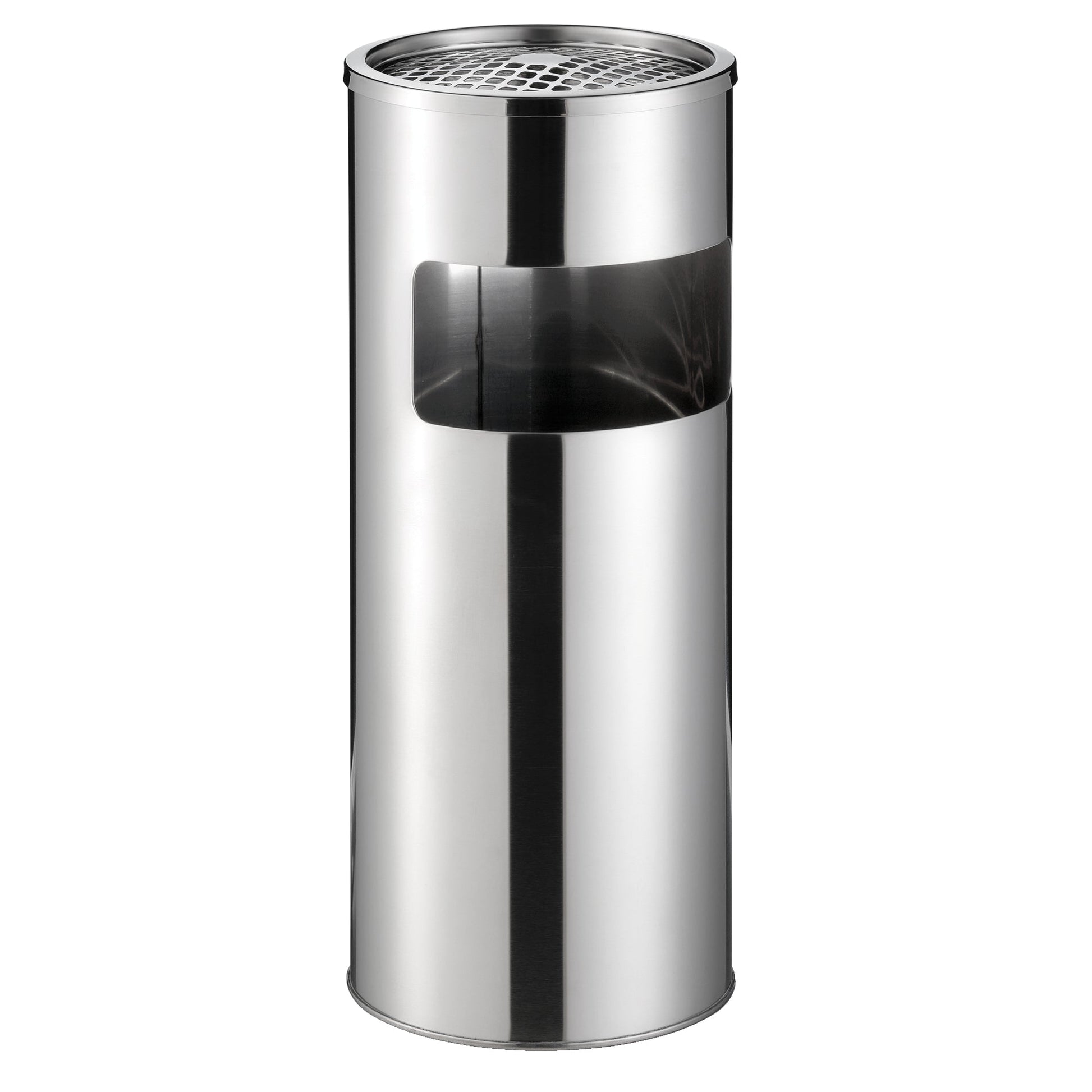 metallic silberPapierkorb mit herausnehmbarem Innen- und Drahteinsatz für leichte Reinigung. Ideal für den Einsatz in Raucherzonen oder Eingangsbereichen.