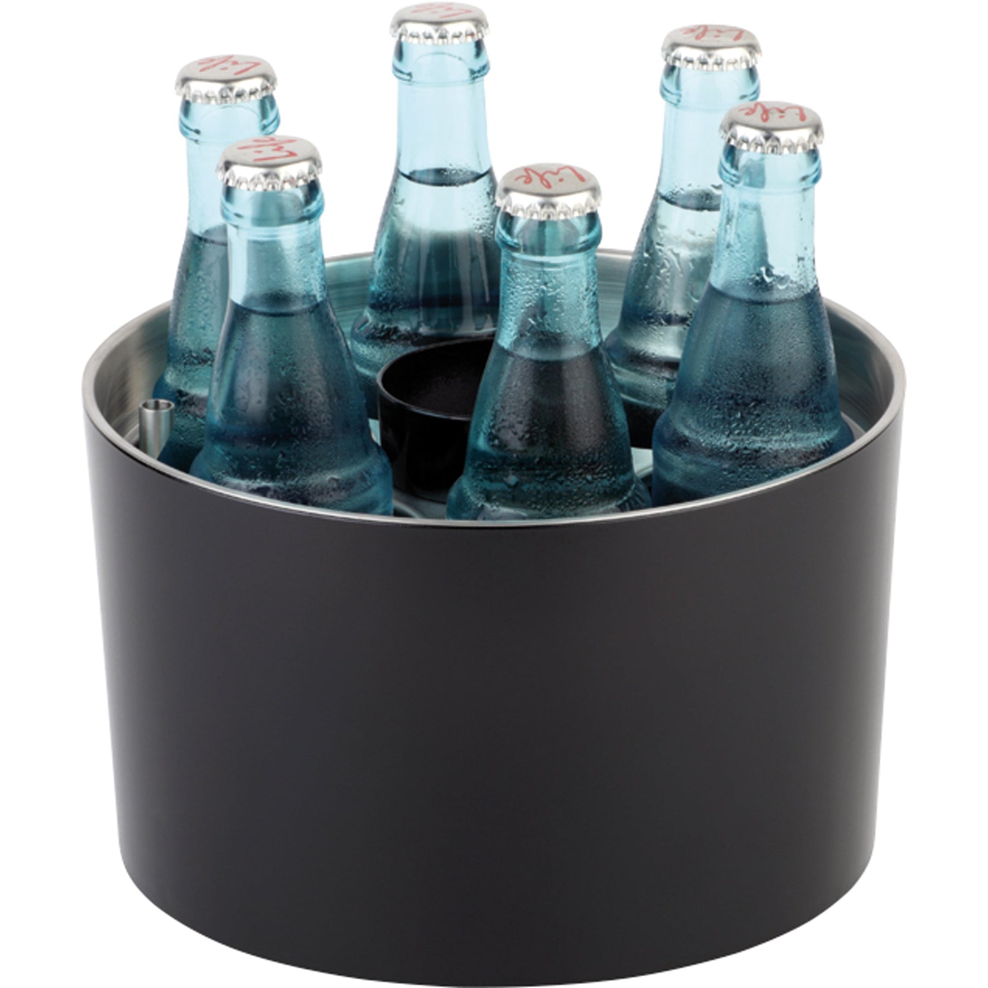 Bezeichnung: APS Flaschenkühler SIEGER DESIGN 0,25 bis 0,5 l 6 Flaschenhalter inkl. Kühlakku, Flaschenöffner, Kronkorkenschale SAN Kunststoff/Edelstahl schwarz