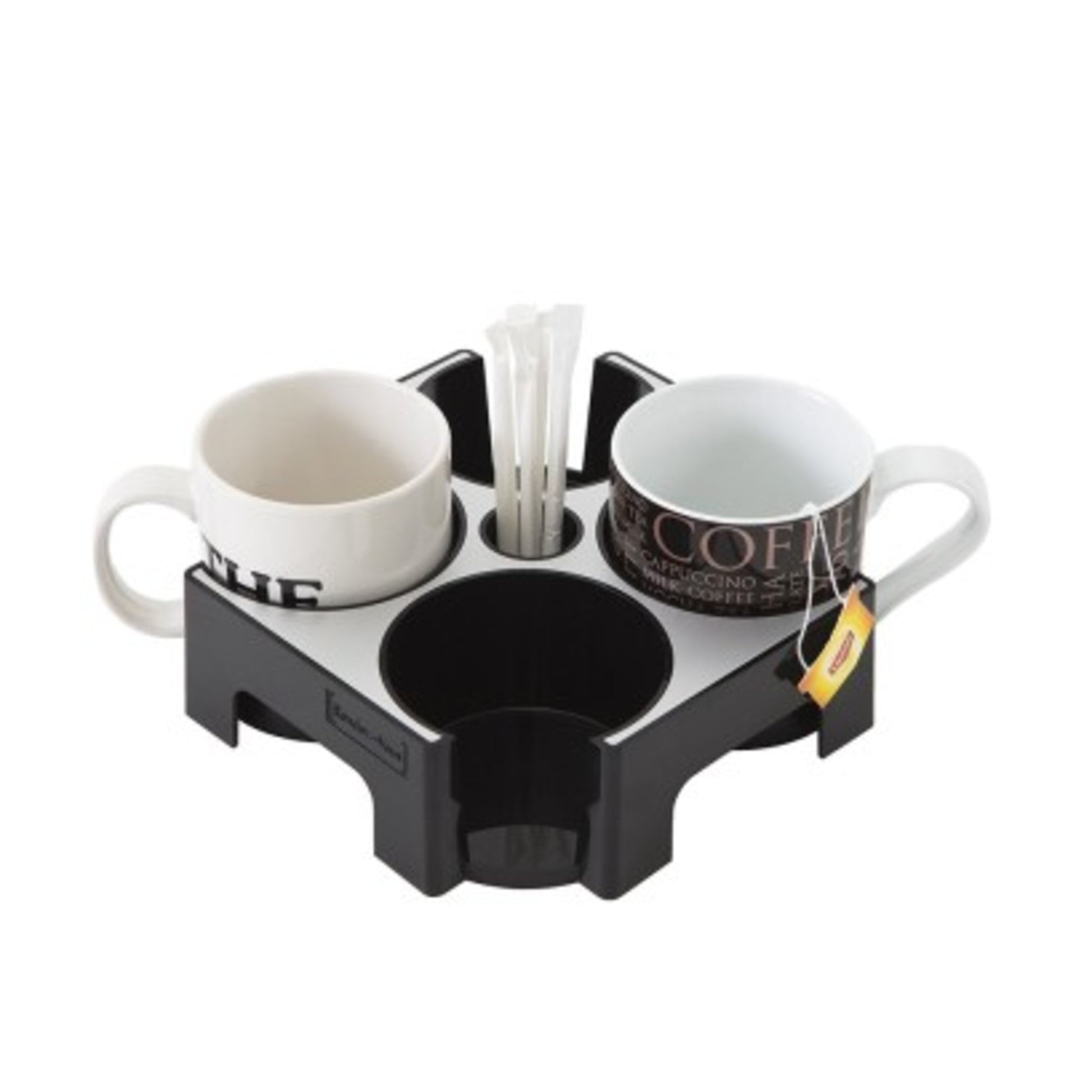 Ausführung des Inhalts (bzgl. der Hauptausstattungsteile): Halter für 4 Becher, ein Fach für Sticks und Rührstäbchen
