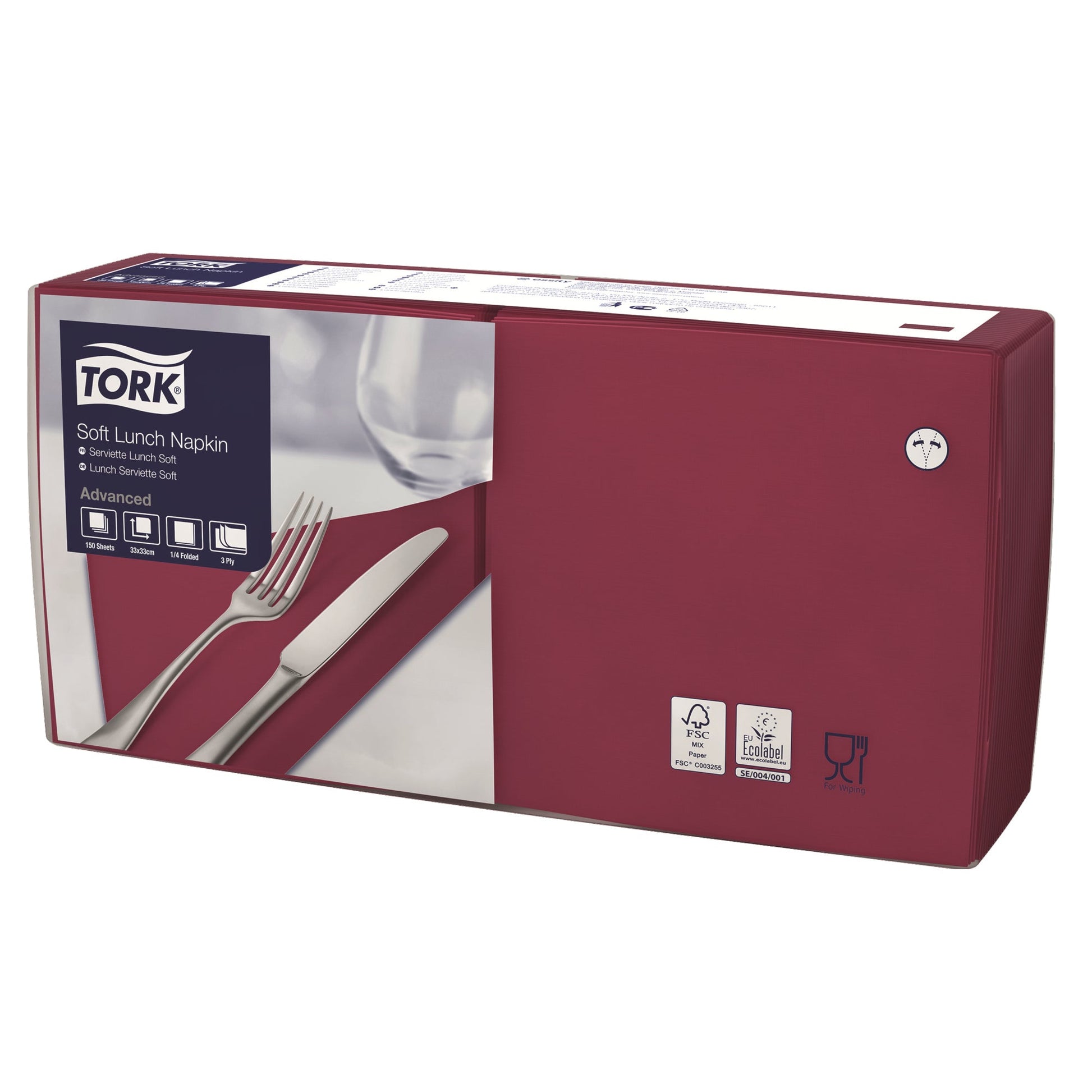 Bezeichnung: Tork Servietten Lunch 33 x 33 cm (B x L) bordeauxrot 150 St./Pack.