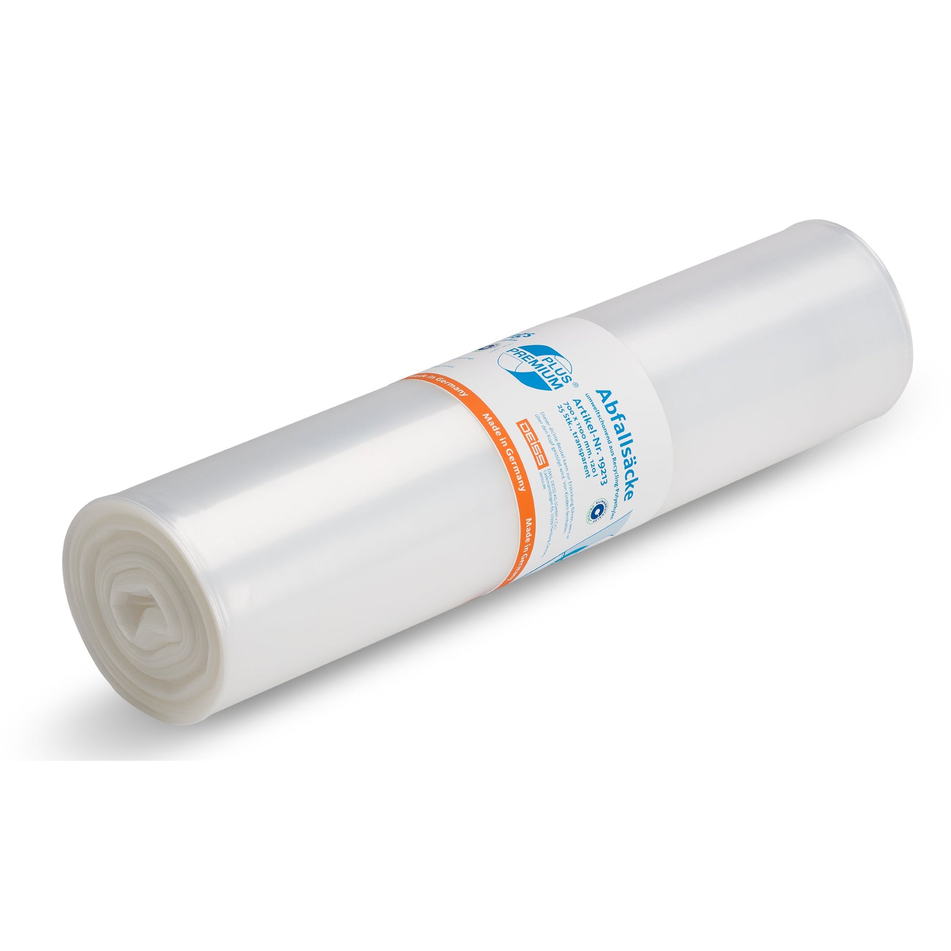 Bezeichnung: PREMIUM PLUS Müllsack 70 x 110 cm (B x H) 120l LDPE, 95 % recycelt transparent 25 St./Pack.