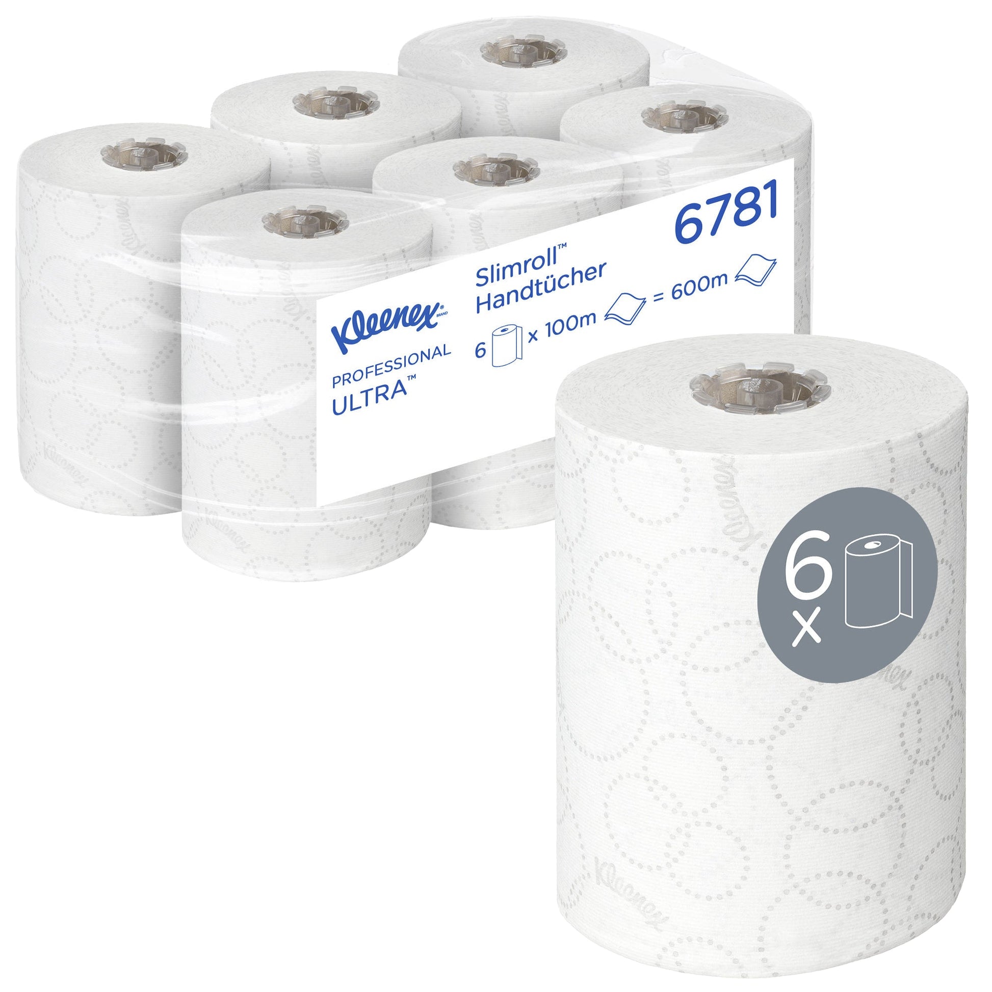 Bezeichnung: Kleenex® Handtuchrolle UltraT SlimrollT 19,8 cm x 100 m (B x L) AirflexT, 100 % recycelbar weiß 6 Rl./Pack.