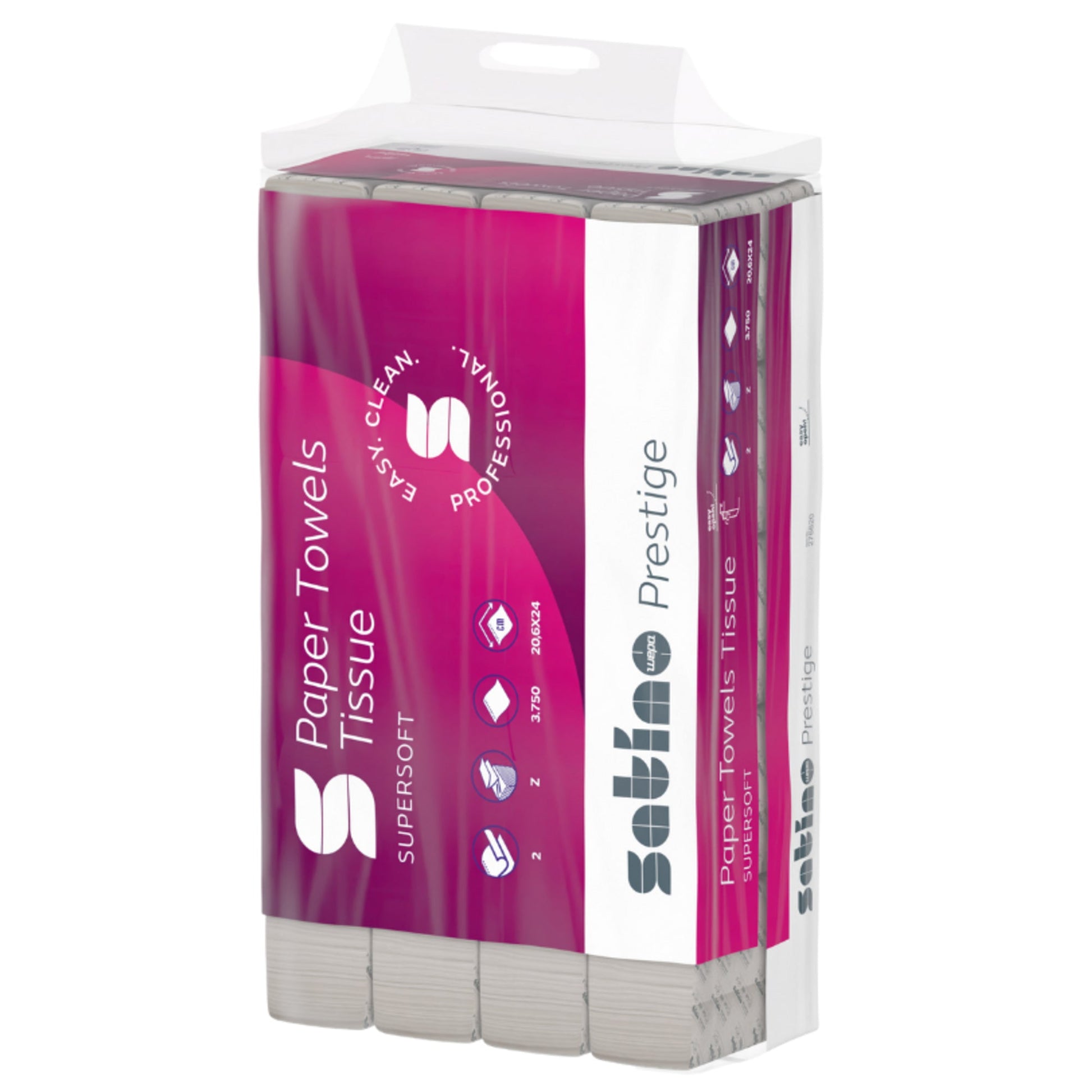 Bezeichnung: Satino by WEPA Papierhandtücher Prestige 20,6 x 24 cm (B x L) Zellstoff hochweiß 25 x 150 Bl./Pack.