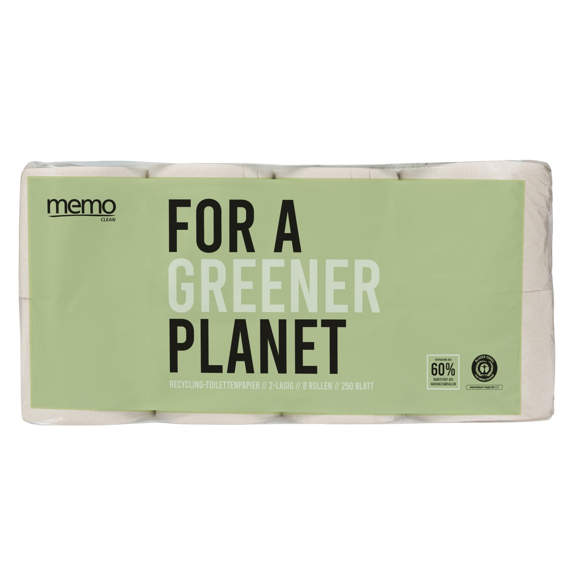 Bezeichnung: memo Toilettenpapier Recycling Tissue 2-lagig weiß 250 Bl./Rl. 8 Rl./Pack.