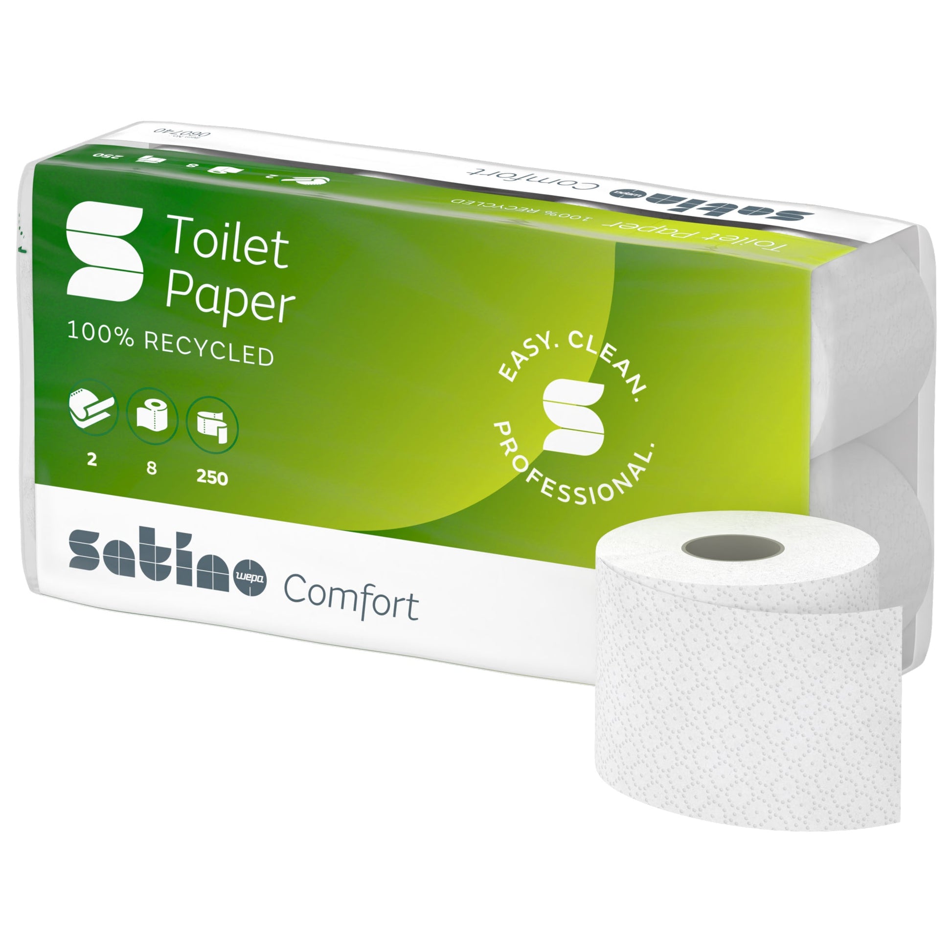 Bezeichnung: Satino by WEPA Toilettenpapier Comfort 2-lagig hochweiß 250 Bl./Rl. 8 Rl./Pack.