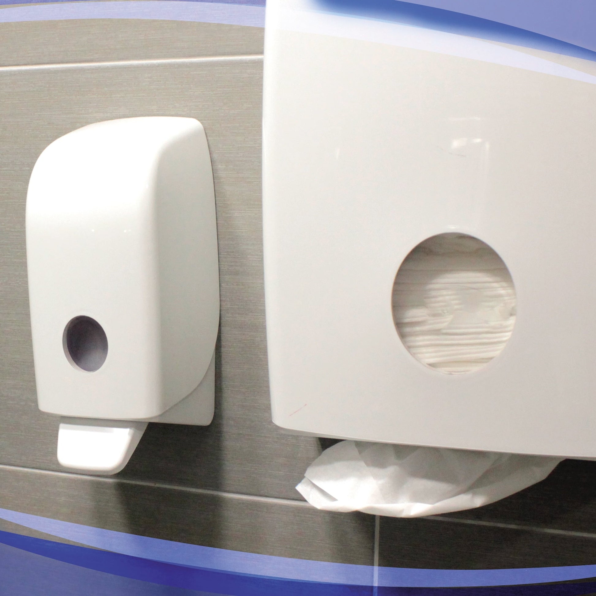 weißSeifenspender aus einem abgestimmten Sortiment an Spendern für Waschraumprodukte, die die Hygiene verbessern, das Wohlbefinden steigern und zur Kostenkontrolle beitragen. Äußerst vielseitig und kosteneffizient, leicht zu befüllen und mit hoher Kapazität, eine intelligente Lösung für jeden Waschraum. Schnell nachfüllbarer Spender in schickem, zeitgemäßem Design mit weißer, reinigungsfreundlicher Hochglanzoberfläche ohne Schmutz- und Staubfallen, mit einem Sichtfenster zur Füllstandsüberprüfung auf einen Blick plus farbigen Einsätzen zur individuellen Gestaltung. Verdeckter Verschlussmechanismus. Wahlweise mit Schlüssel abschließbar.